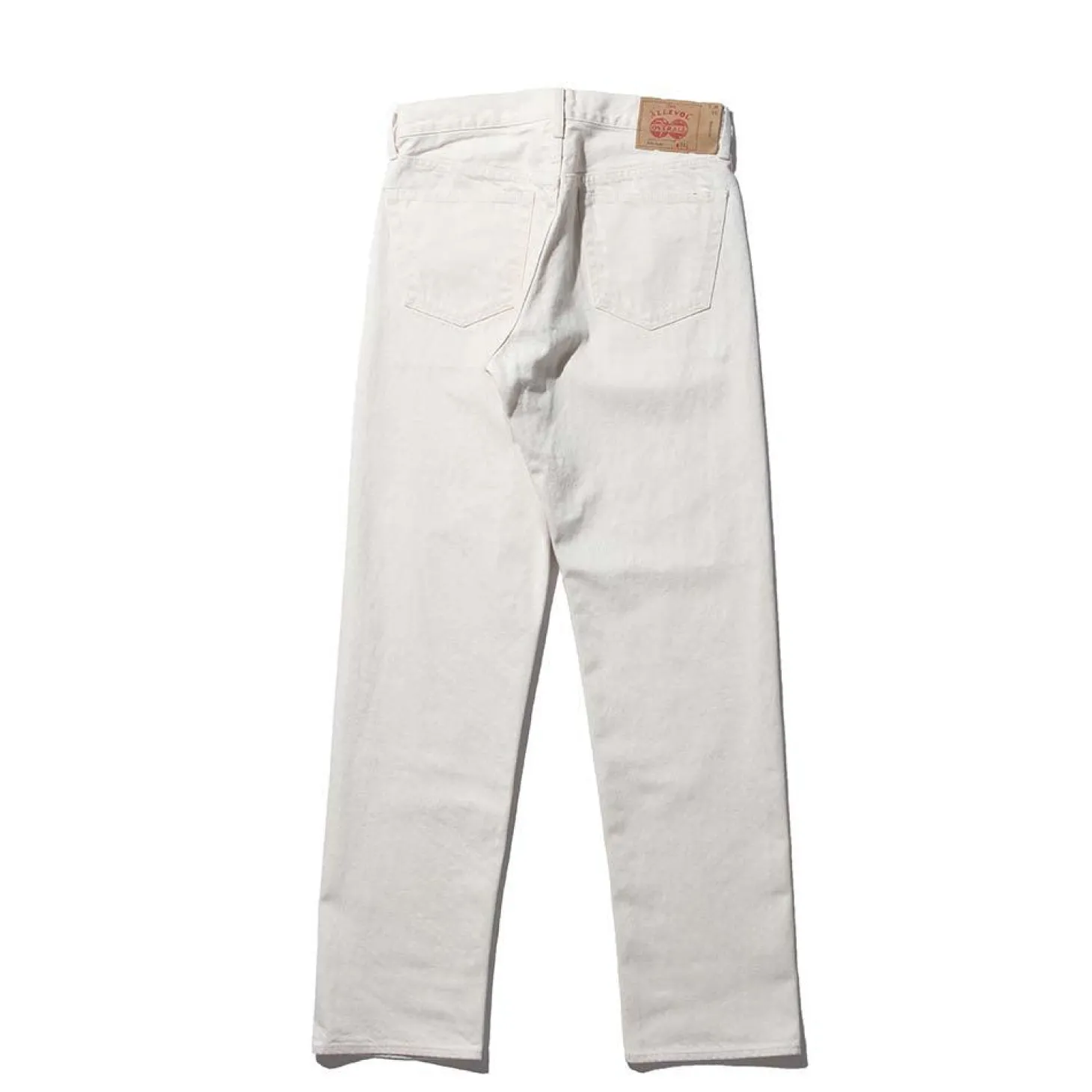 All made in Japan, these come one wash as standard and feature a period correct Allevol paper patch with hand stamped sizing as well as a laurel wreath donut button fly and red selvedge ID.