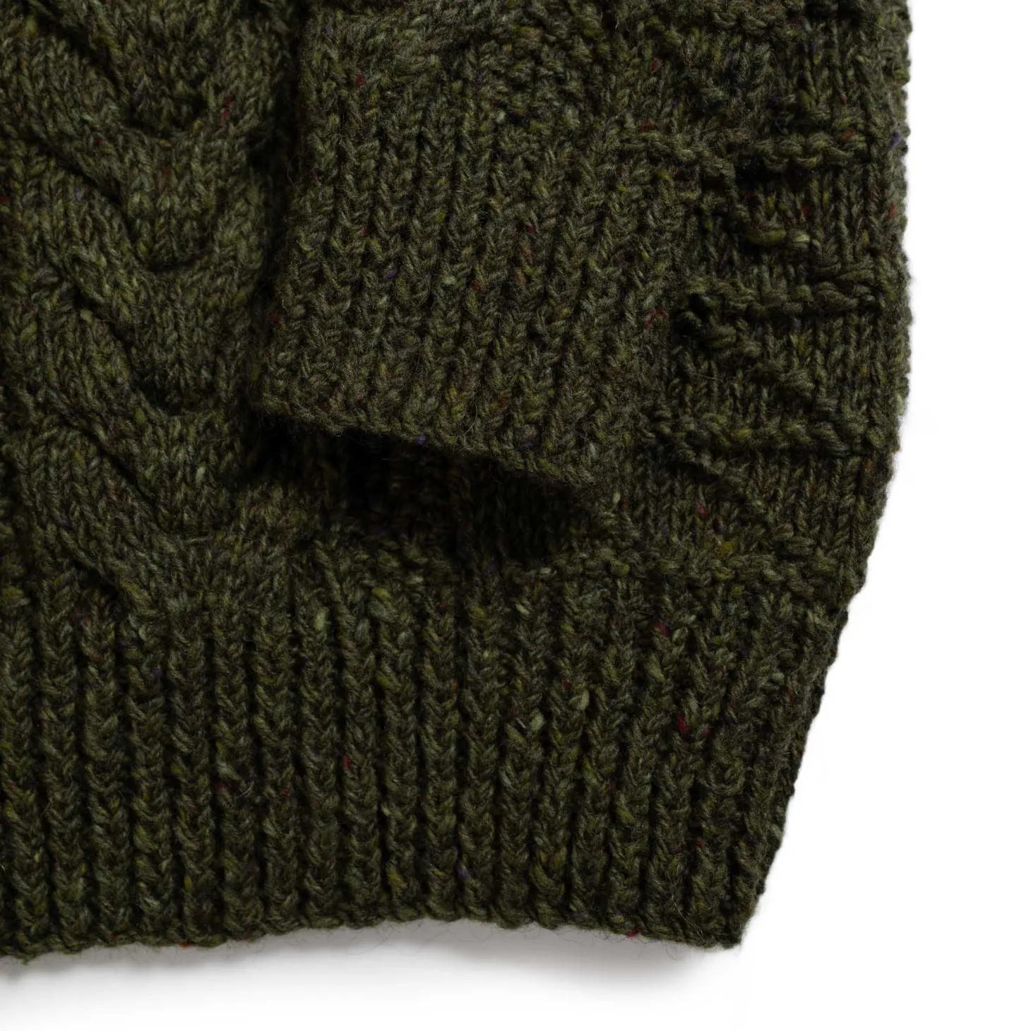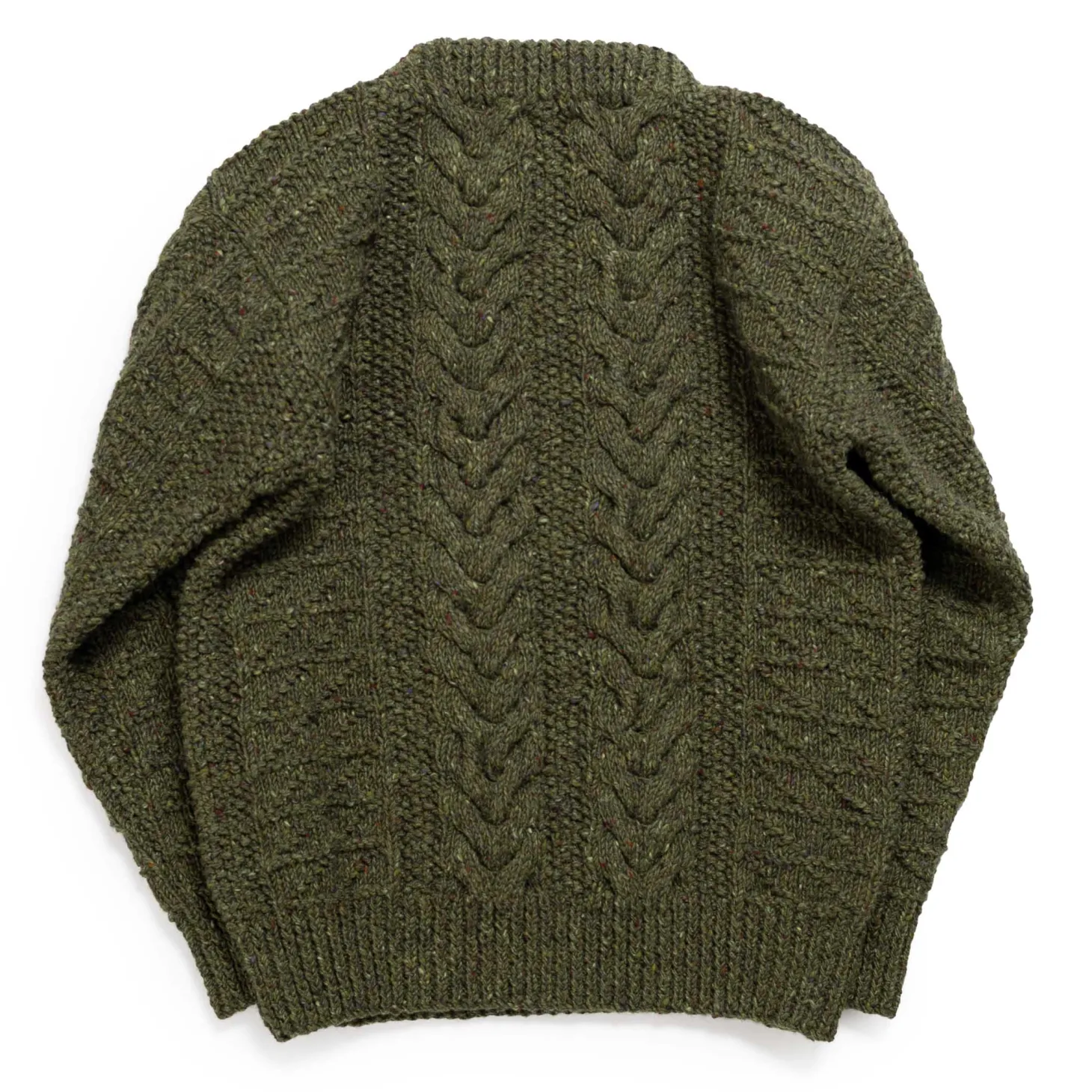 A collaboration with Inverallen of Scotland & Allevol, each piece is and hand-knitted to a traditional cable knit pattern. This 1G Pegasus Crew Neck style is knitted with a blend of wool & mohair in Scotland. A Simple ribbed crew neck has been paired with plain knitted ribbed cuffs and hem.