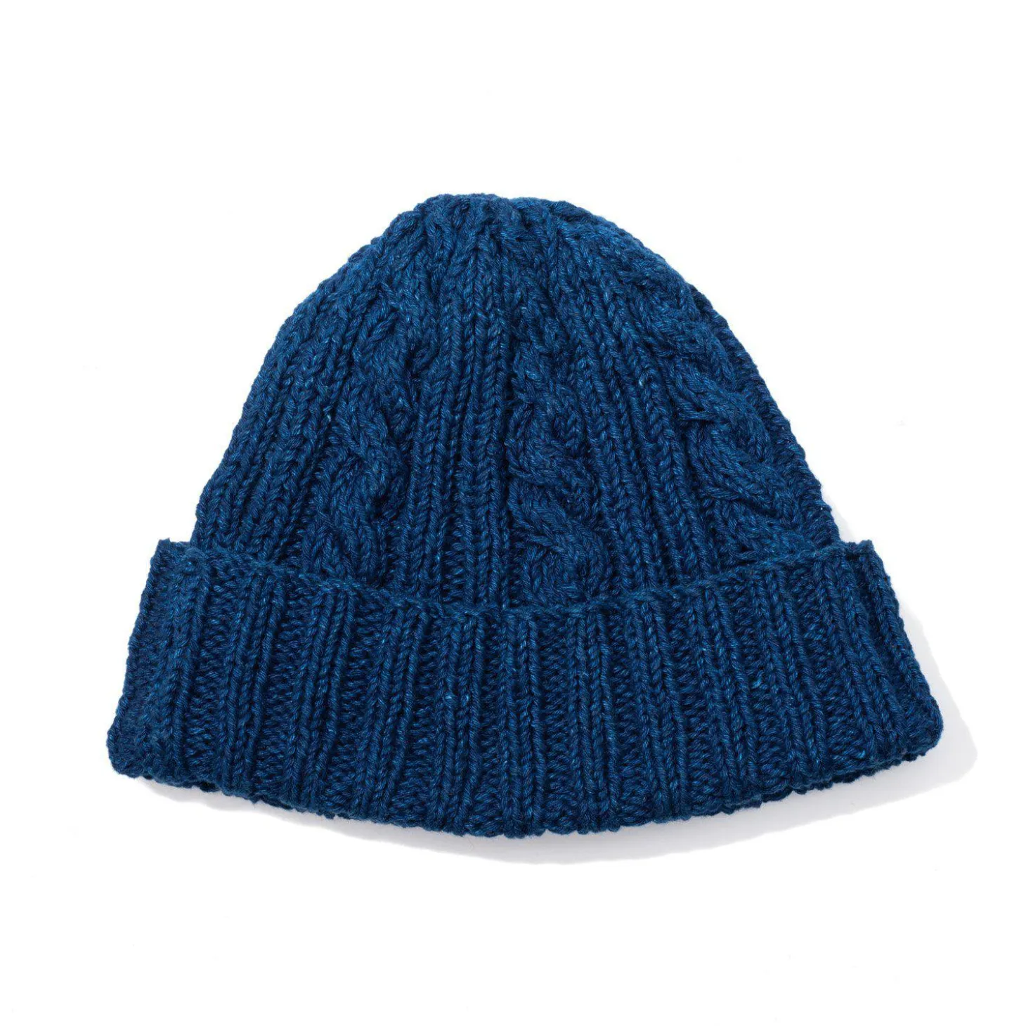 A collaboration with Inverallen of Scotland, all pieces are limited in no. and hand knitted to a traditional cable knit pattern, in a thick indigo dyed cotton.