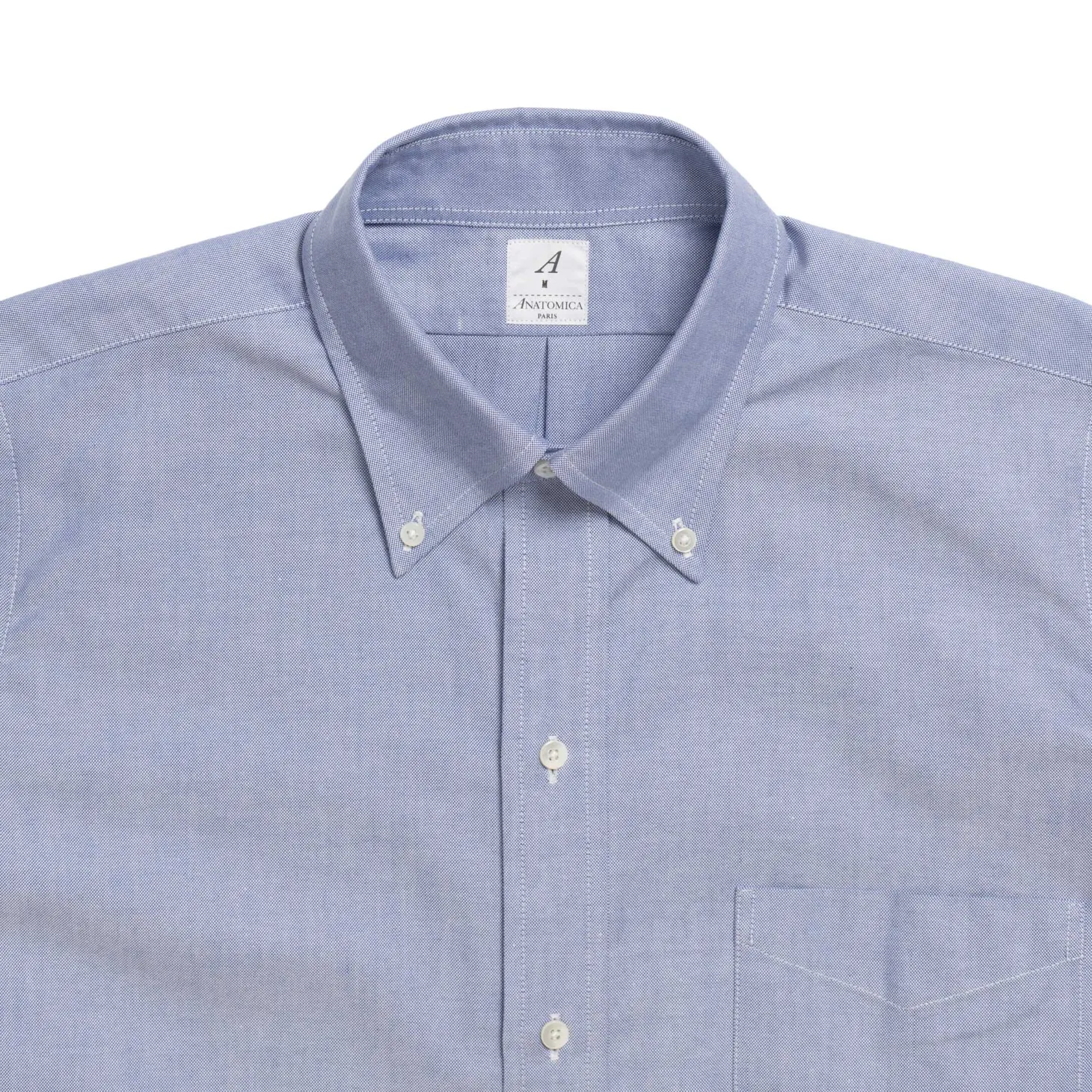 This take on the enduring classic menswear button down shirt has been cut in Japan from 100% cotton, in a custom fabric expressly manufactured for Anatomica in Japan. The six button front has equal spacing between buttons and allows for a tidy collar roll. A single chest pocket completes the look.