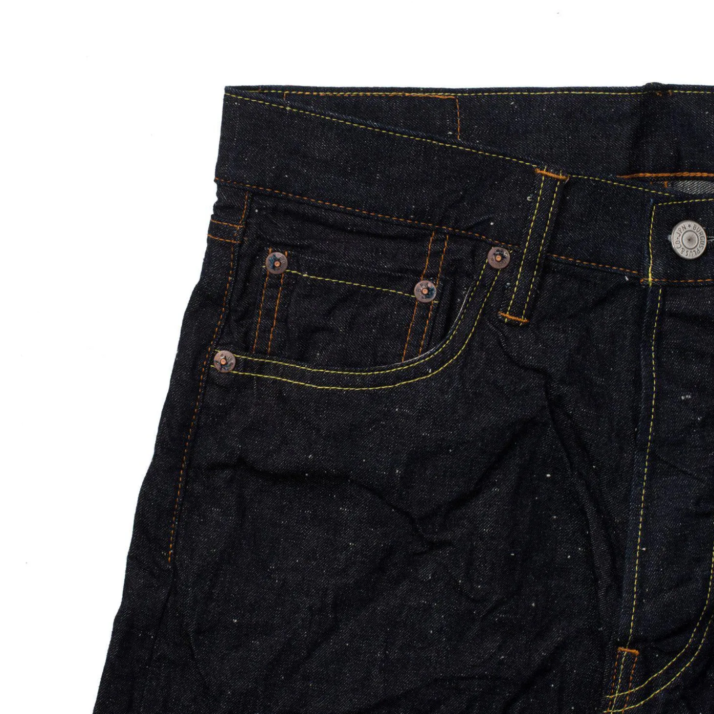 Taking Burgus Plus’ 770 model as a silhouette, we increased the rise by 1″ to give the fit a little more of a classical ‘western’ silhouette. The 9oz selvedge denim is woven in Japan from American and Australian cotton which has a great textured ‘nep’ flecked through the fabric.