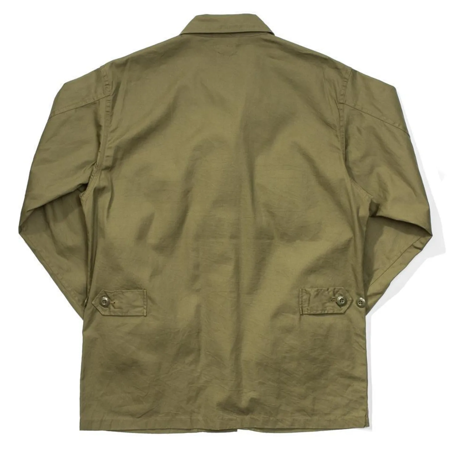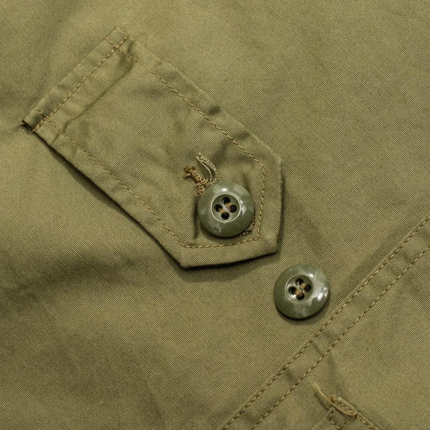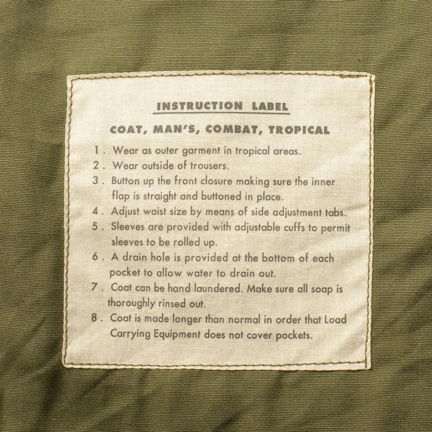 The ‘1st Pattern’ Jungle jacket features some unique details specific to the initial contracted design of these jackets in 1963. Made from a 5.5oz cotton poplin the design was inspired by the WWII parachutist jacket, with four bellows flapped patch pockets, the two angled chest pockets for easy access, waist adjusters and epaulettes, plus internal ‘gas flap’. Over the course of the Vietnam war, the jacket would be updated a number of times to simplify the design and make it more suitable for jungle warfare.