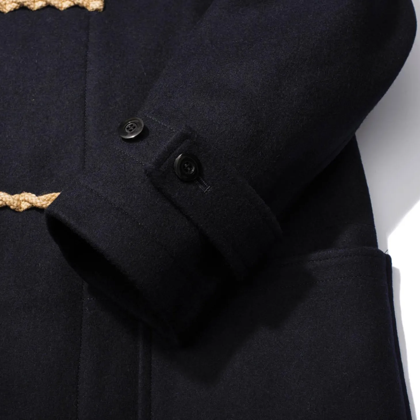 Deriving from the coats namesake town in the province of Antwerp in Belgium, the Duffle coat was typically constructed from a coarse, thick woollen material. The initial influence of what later would become the duffle coat we are familiar with today probably came from the Polish military Frock Coat, developed in the early part of the 19th century.