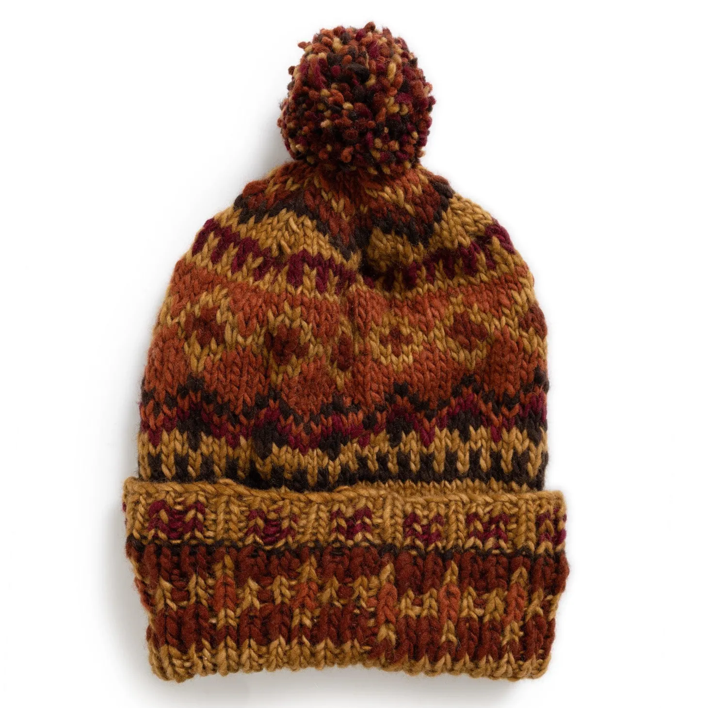 Chamula Double Cuff Cap Fair Isle #3 Dark Gold