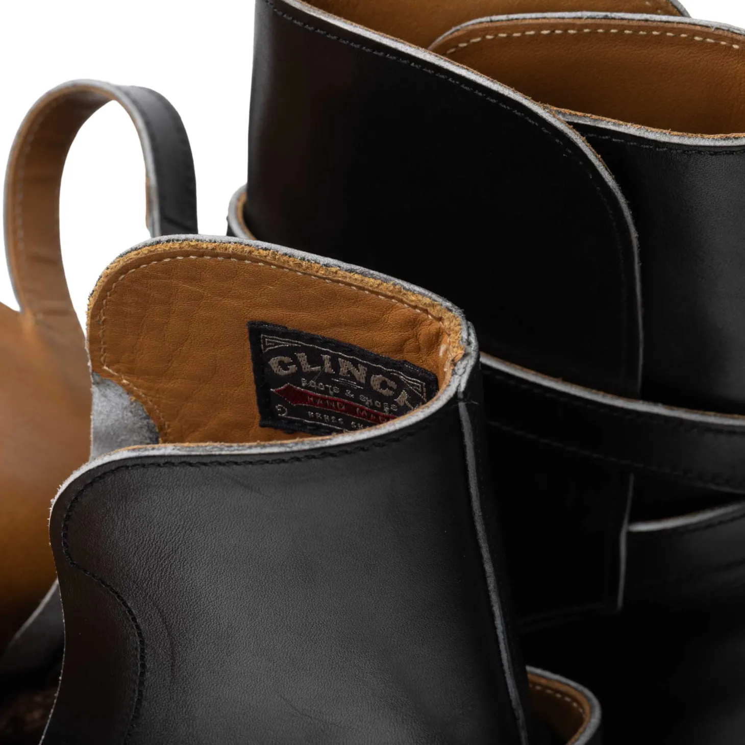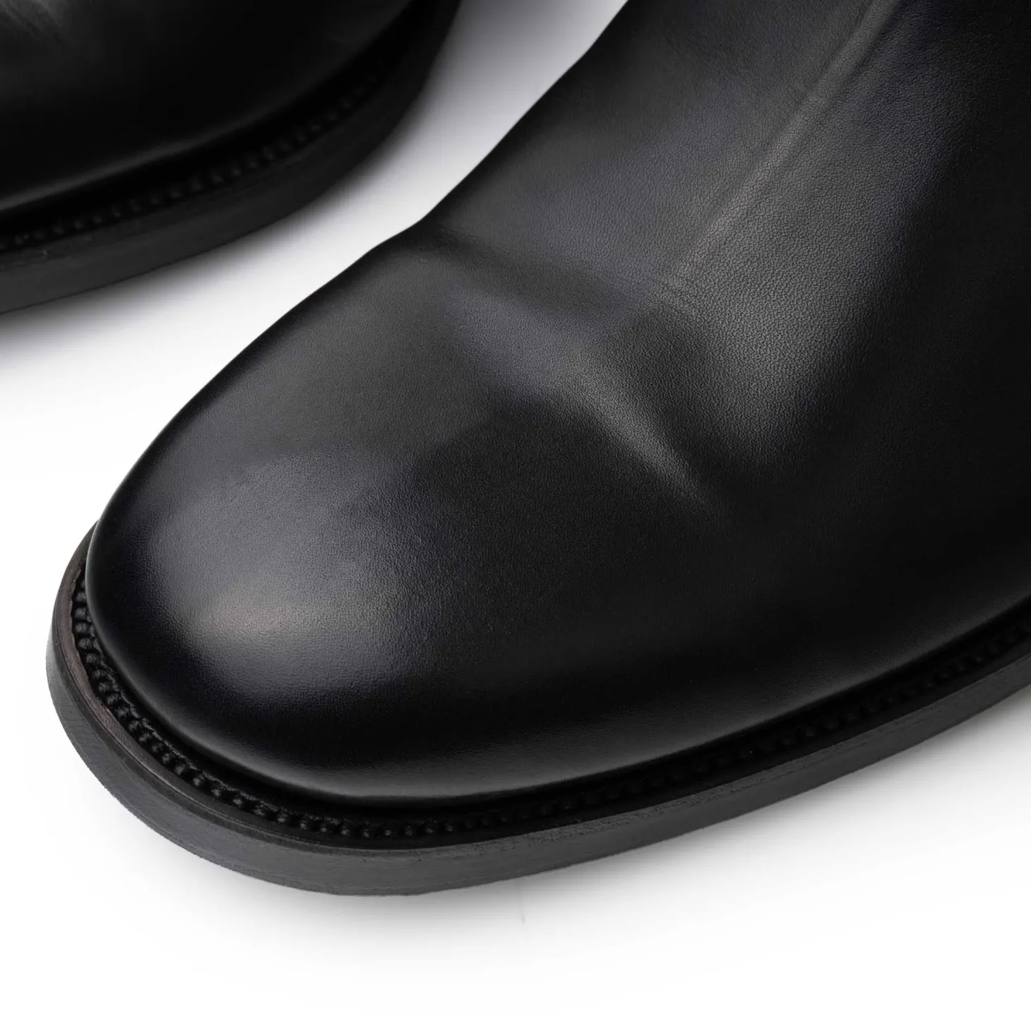 This pair uses a Black Calf leather sourced from France, favoured for its full black dye that is put though the entire hide, meaning the leather will hold its colour. Their tanning processes involve drying and ageing stages that take four to six months that end up producing leathers with a unique texture and grain.