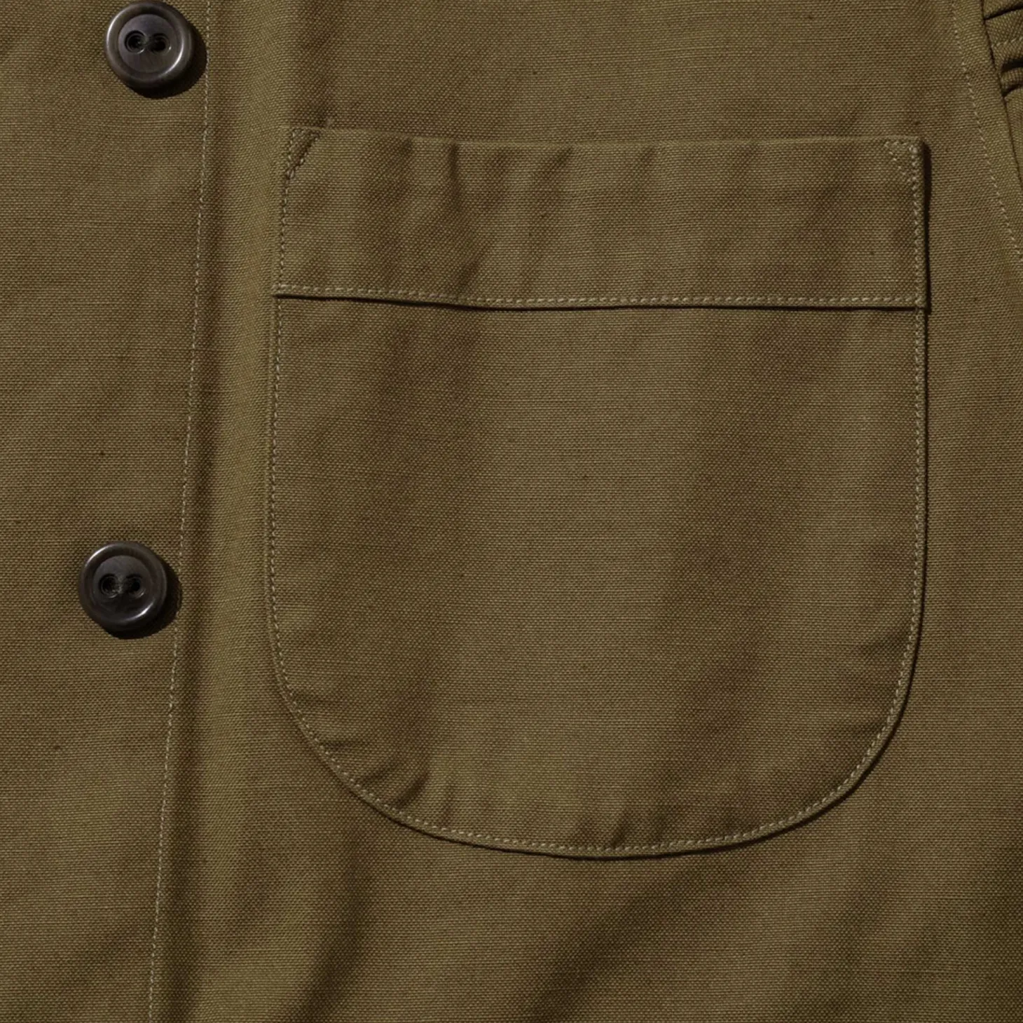 Cut from 100% cotton in Japan, other features of the Kees include two lower patch pockets (one with separate compartment), a single chest pocket and a small diagonal pocket complete with exposed selvedge trim. There are pockets a plenty with this utilitarian piece with one lower pocket and one toggle closure on the inside while the garment is complete with concealed waist ties.
