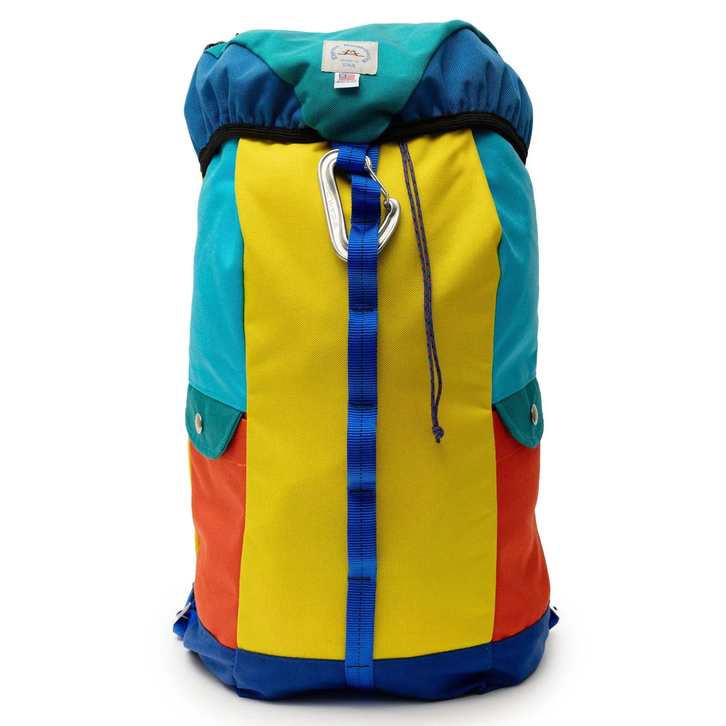 Probably Epperson’s signature model and certainly the most recognisable. The Medium Climb Pack offers easy-access portability in a high capacity pack, well suited for day to day use as well as weekends in the hills and further travels. The design aesthetics are easily traced to the climbing rope bags, with the cylindrical design and draw cord closure. Each colour is vividly striking and draws to the classical styling of the 70’s & 80’s. EM’s experiences climbing with the backpack led to the addition of the distinct and easy-to-use carabiner front closure which now defines the pack. Each backpack is constructed using premium, American-made components, making them as tough as the climbers who inspired them.