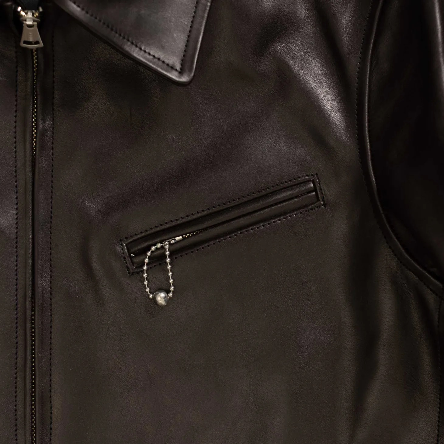 Each jacket is hand-stitched in their Tokyo studio with great skill, using a fine stitch-count which is extremely hard to achieve on leather manufacturing. The Joseph has been produced with the same sewing techniques as seen on vintage leather jackets to enhance the puckering through the seams creating wonderful, subtle areas of character that run through each garment.