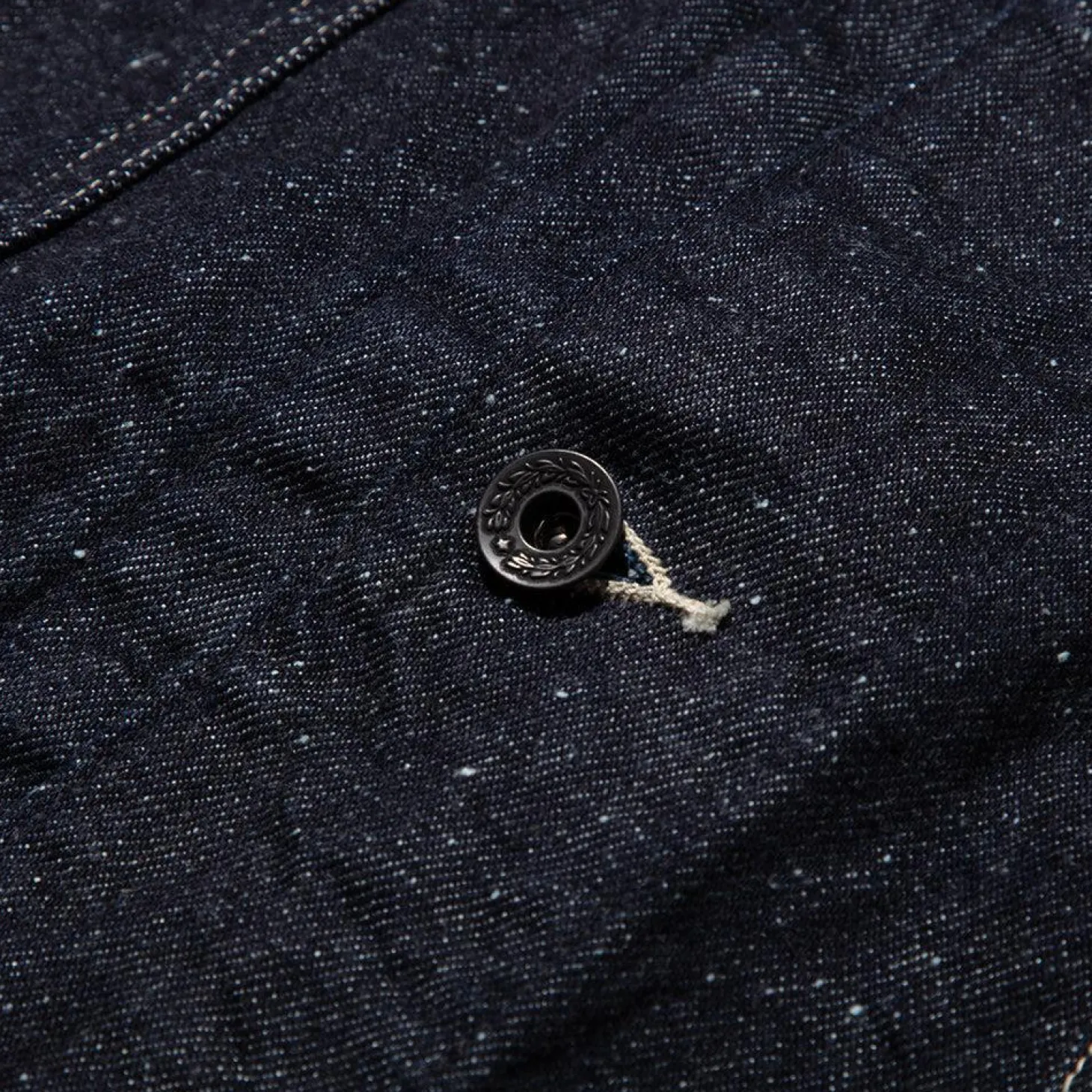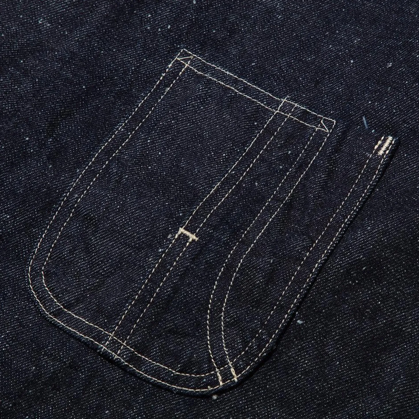 The Denim Work Jacket is inspired by vintage style work Jackets from 1920’s-50’s. Cut in Japan from 100% cotton this Denim Work Jacket utilises recycled suvin cotton yarn waste. Suvin is known as one of the most luxurious cottons in the world and certainly one of the softest. Developed in-house by Toyo, this recycled suvin 11.5 oz cotton has a slubby and unique texture, a distinctive feature of suvin.