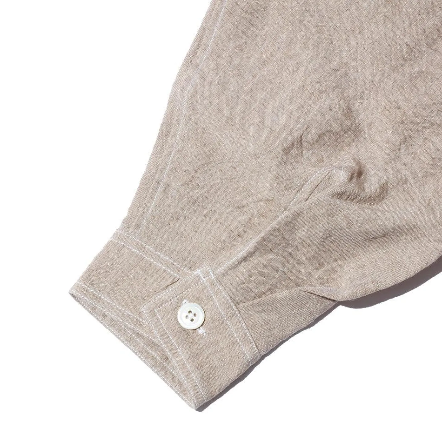 The Dungaree Shirt from Haversack is new for SS24 and has been cut from 100% linen in Japan. The shirt features a band collar with a four button placket, contrasting stitching throughout and one large patch pocket on the left and one large double patch pocket on the right. A curved hem and relaxed fit completes the look.