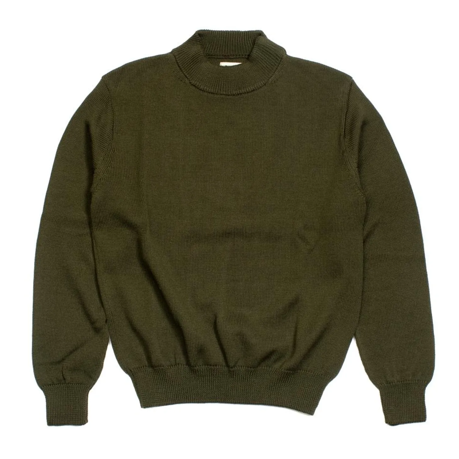 Knit in Germany from 100% extra fine virgin merino wool, this sweater features a mock neck collar for added warmth while the cuffs feature hand sewn intricacies. This knit should fit snug when you first wear it and allow for the garment to take shape with multiple wears and mould to your body.