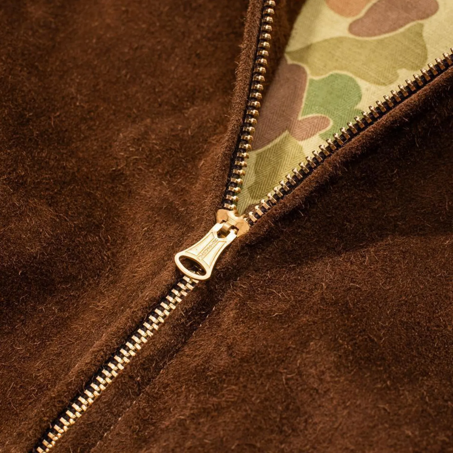 The jacket has been lined with a heavyweight Vietnam-era tiger stripe camo exclusive to Himel, produced in Japan.