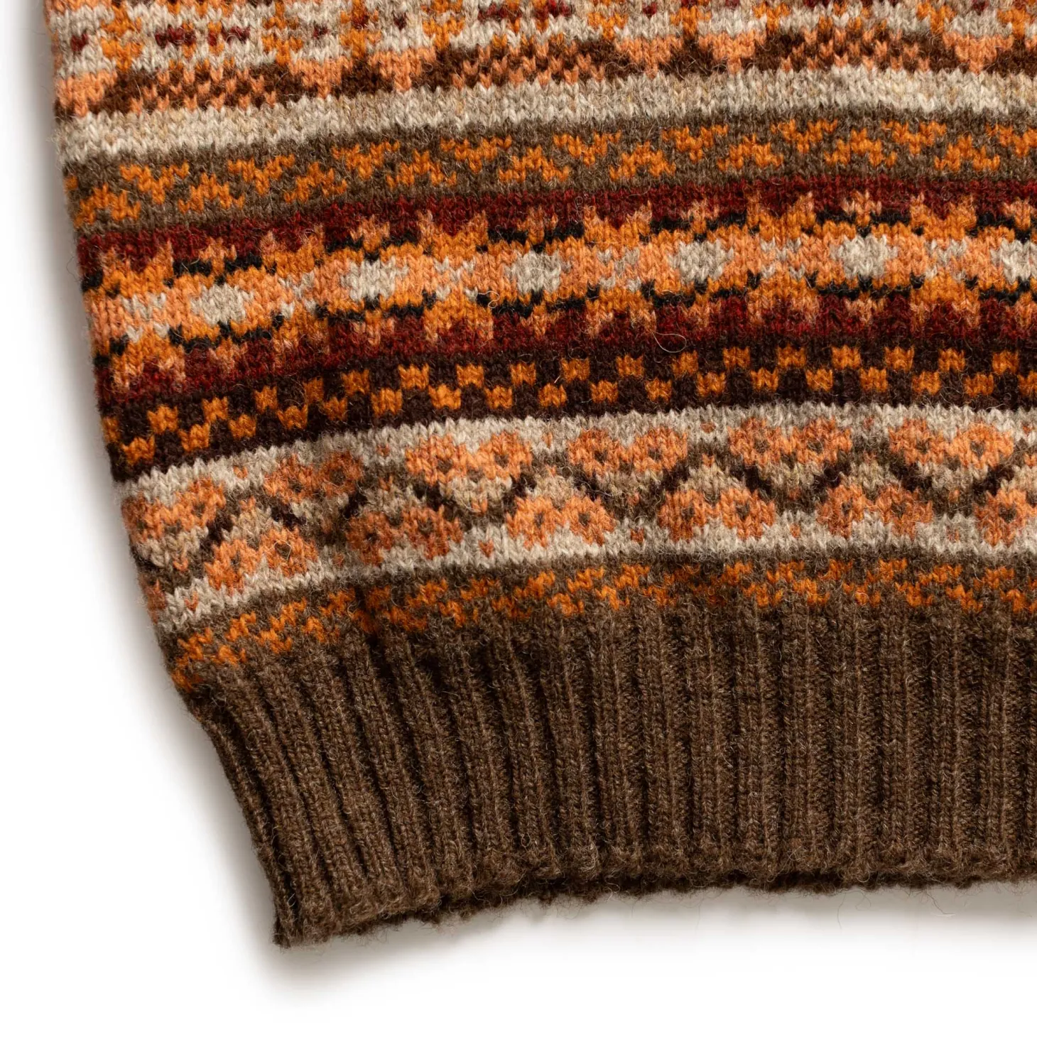 Made in Scotland, our Shetland Sweaters from Jamieson’s have been brushed for extra extra softness & texture, giving it an almost lived in look & feel. This Fair Isle Slip Over also features a ‘v’ neck collar and traditional saddle shoulder, knitted from 100% Shetland wool, coming in an intricate & traditional fair isle pattern.
