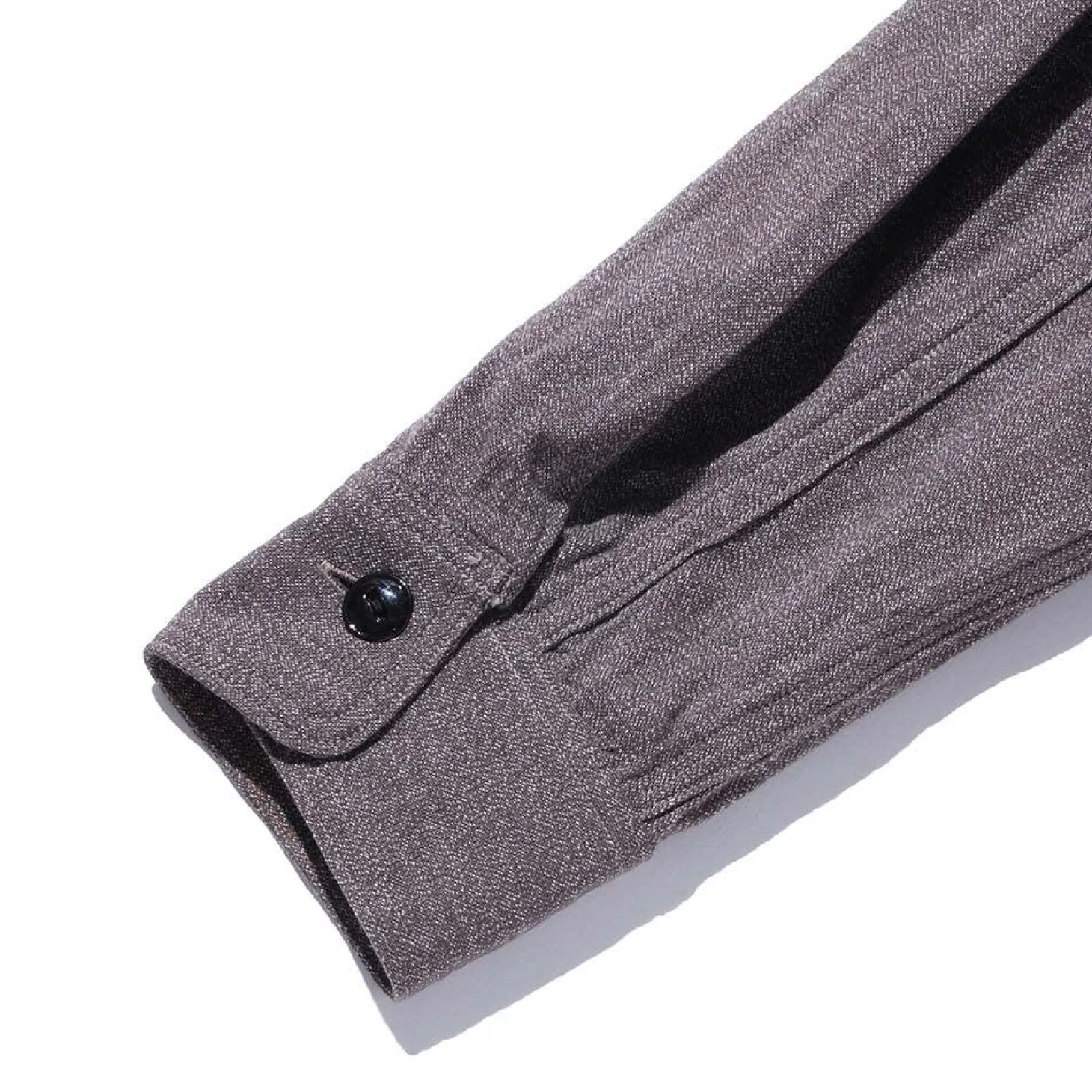 Cut in Japan from 100% cotton chambray, in a ‘cinnamon’ colour-way, reminiscent of the classic work-wear ‘Salt & pepper’ variation. The Ciggy Shirt is based on a vintage Big Yank ‘Gatchapoke’ work-shirt of the 1920’s or 30’s. The name comes from the asymmetrical pocket shapes, originally designed to house cigarettes.