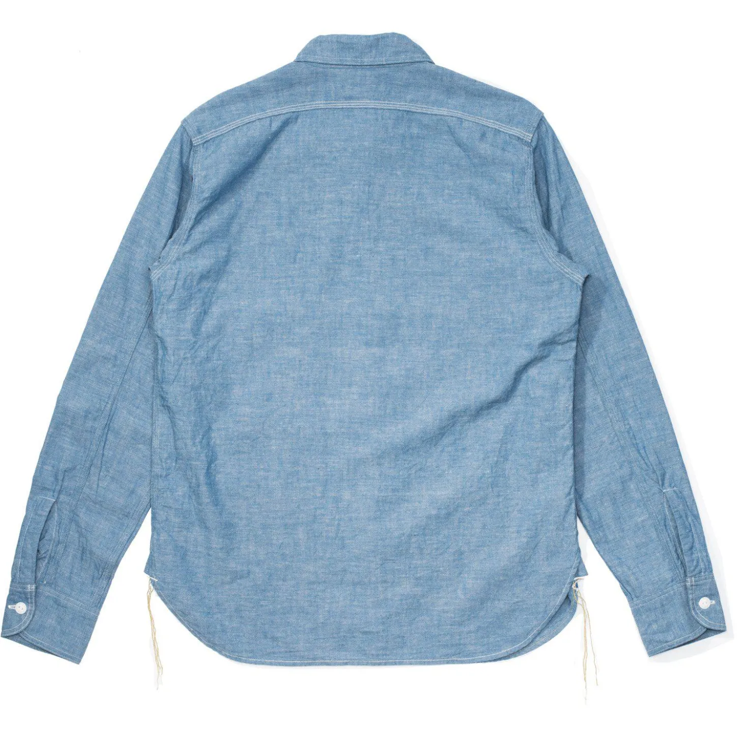 Cut in Japan from 100% cotton chambray, the Smoker Shirt is based on a vintage Big Yank ‘Gatchapoke’ work-shirt of the 1920’s. The name comes from the asymmetrical pocket shapes, originally designed to house cigarettes. A button front with contrasting white buttons and triple stitched detailing throughout completes the look. This particular model is based on a vintage ‘Braveman’ style from the brands archives.