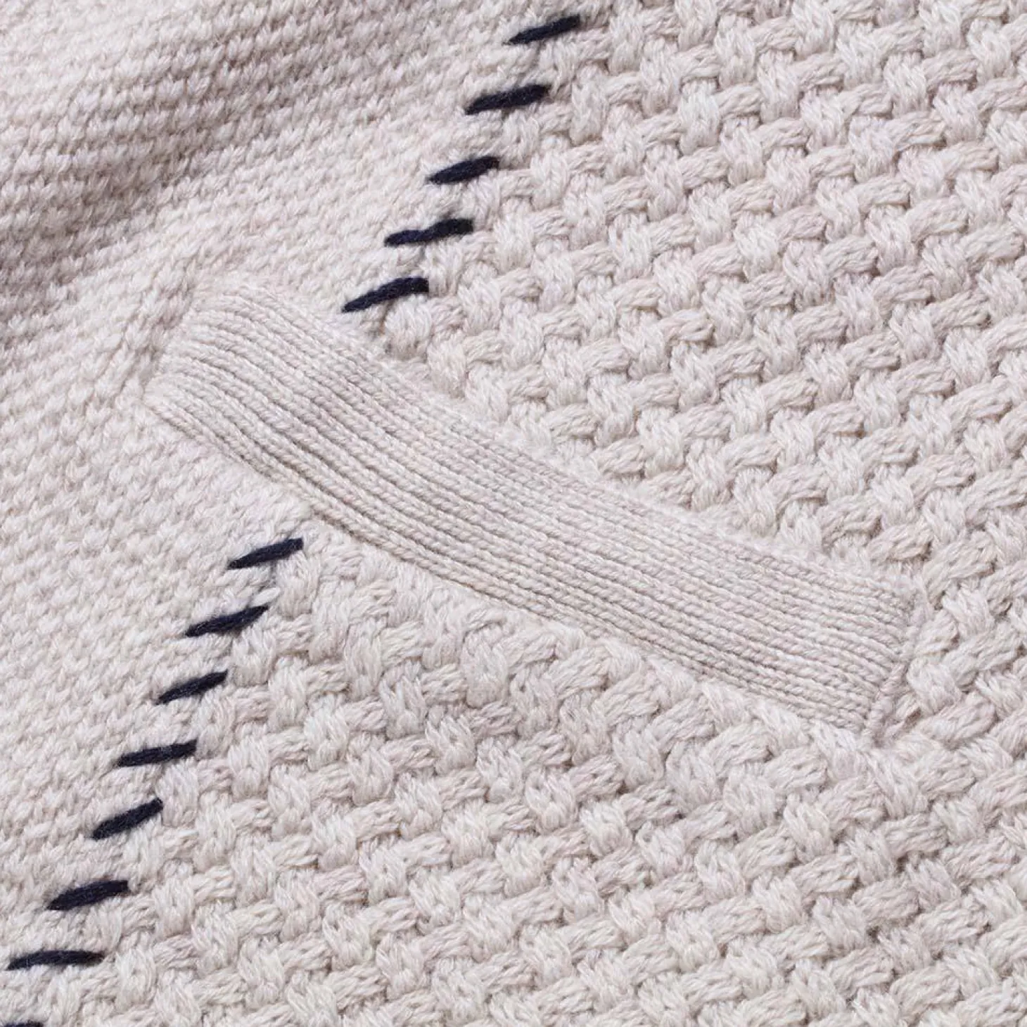The Multi-Patterned Cardigan w/hand stitch from KUON is inspired by the Japanese art of ‘Kintsugi’ whereby damaged pottery is repaired – this is represented through the hand-stitch that runs through the body and shoulder seam of the cardigan. Made in Japan and cut from 100% wool, this version comes in a classic ecru colour-way and features a relaxed fit, a button front and two lower pockets.
