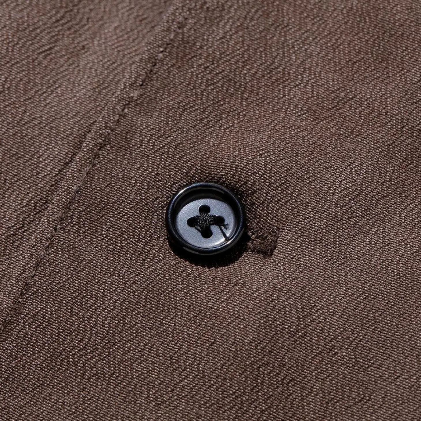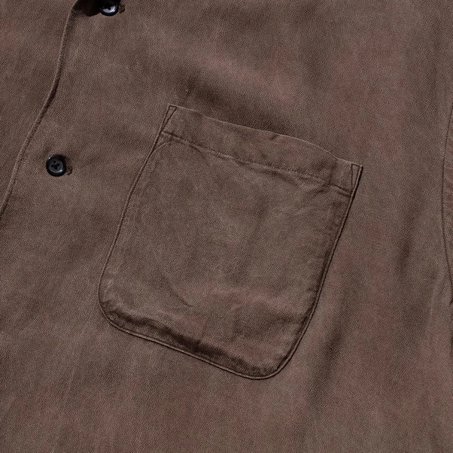 Cut from 100% crepe rayon in Japan, the Dorozome Open Collar Shirt shirt has a regular fit that works perfectly for a modern, casual look. The shirt also features a button front and a large single chest pocket while the open collar harks back to casual leisure shirts from the 50’s.
