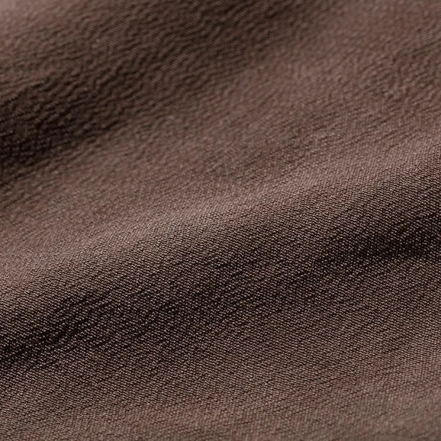 Here we have the Dorozome Open Collar Shirt in a Mud Brown colour-way. Dorozome runs through the veins and history of the island of Amami-Oshima, a collection of islands north of Okinawa. As with most Japanese dying techniques, this natural dye (that comes from Sharimbai – or wood chips from the Japanese Hawthone tree) was used to colour natural silk that was then used for the production of clothing and in particular Kimonos.
