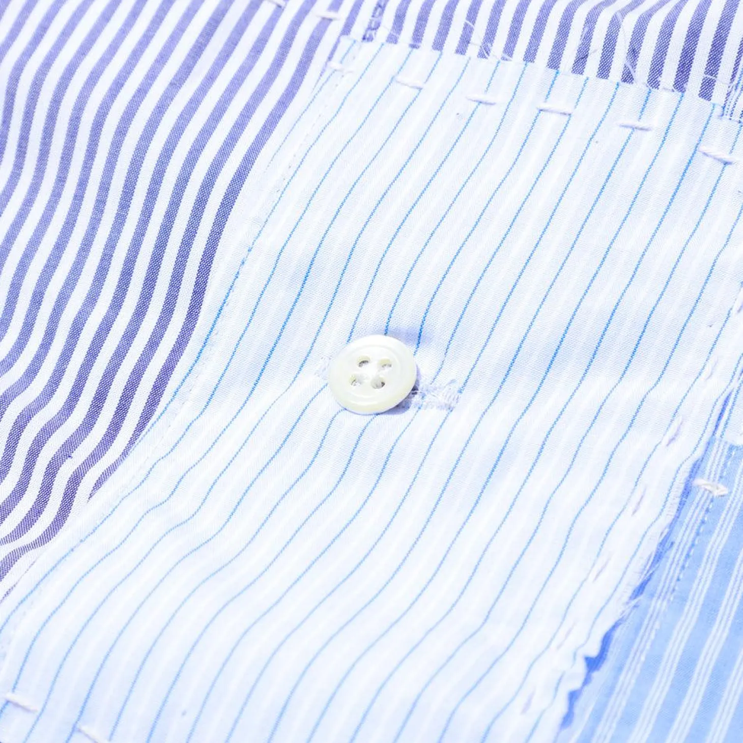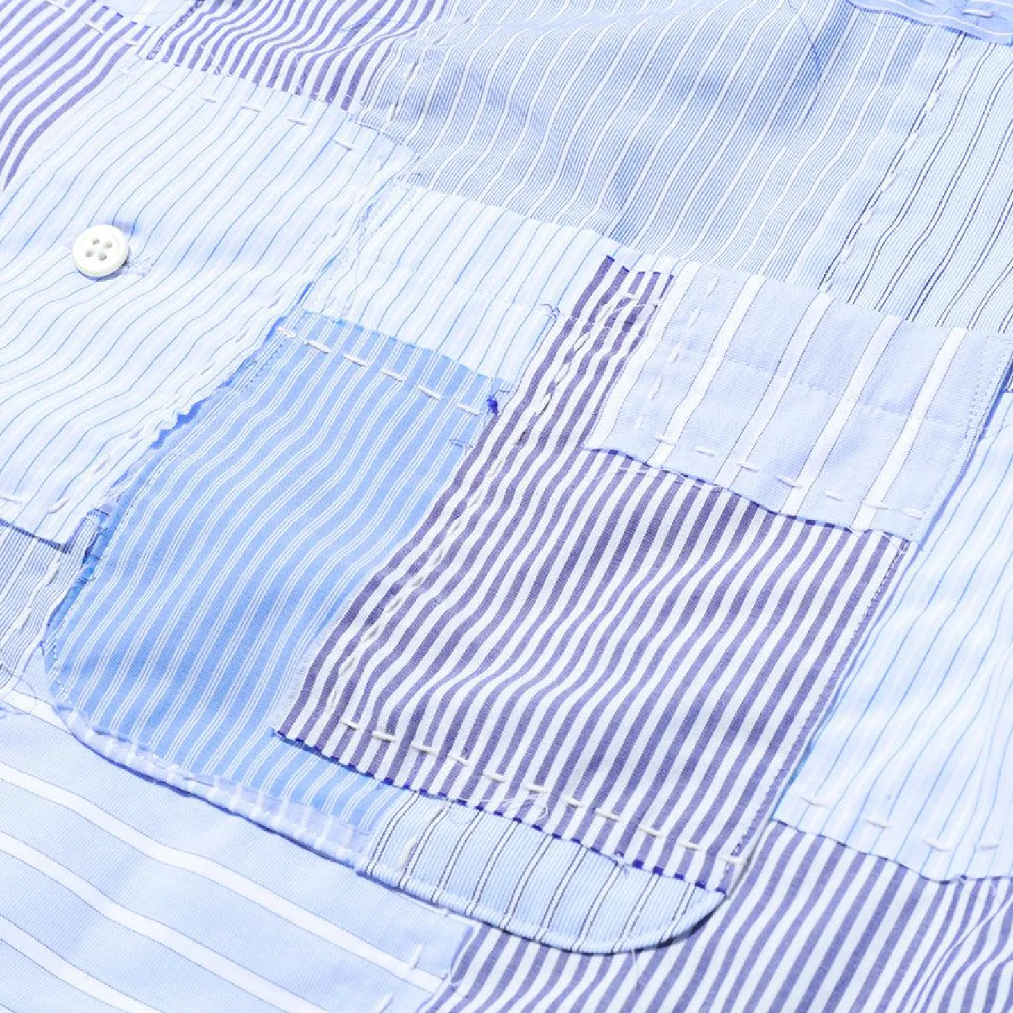 Here we have the Sashiko Patchwork Camp Collar Shirt, sashiko stitched by hand with off cuts from their production process. This shirt is made entirely by hand in Japan, by the Otsuchi Recovery Sashiko Project, a volunteer project run by women who were affected by the Great East Japan Earthquake and Tsunami.