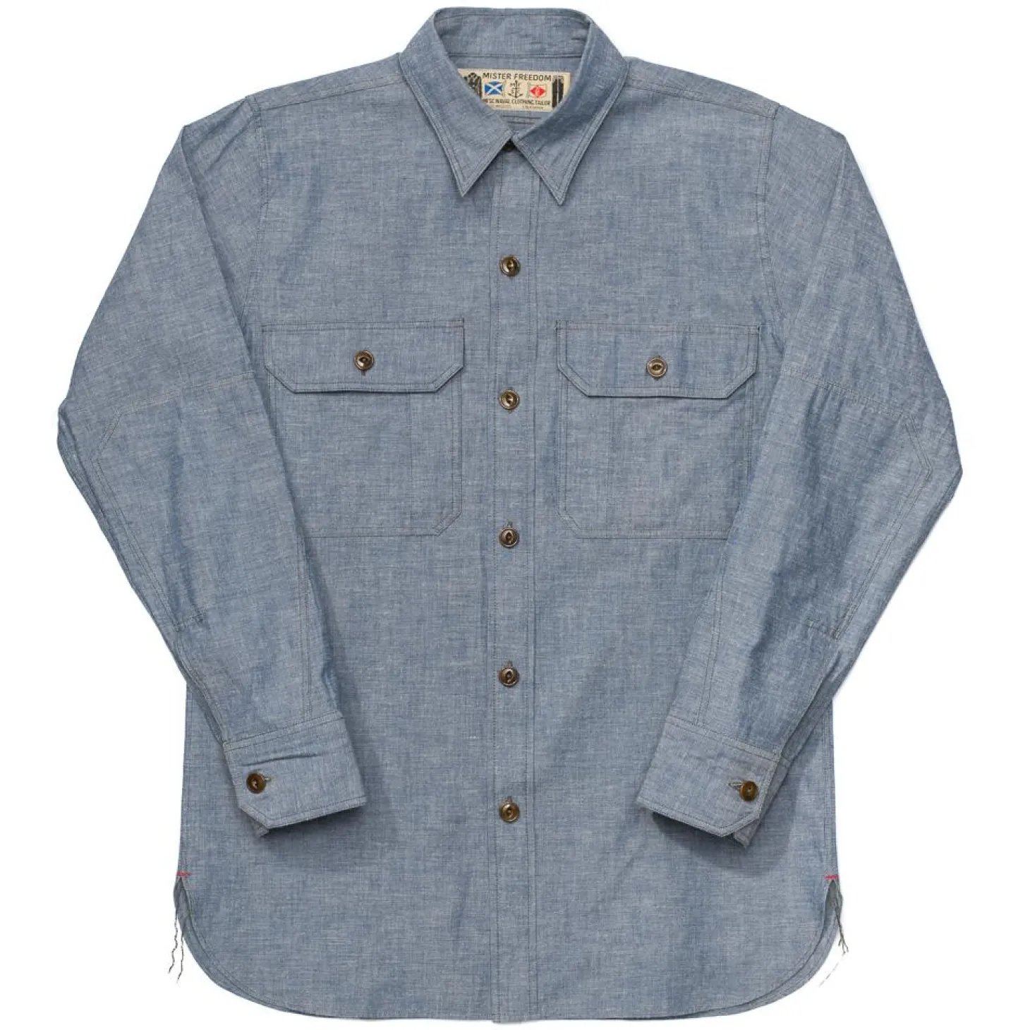 New for this AW20 season from Mister Freedom we have the Snipes Chambray Shirt, inspired by an original issue US Army full button up shirt.
