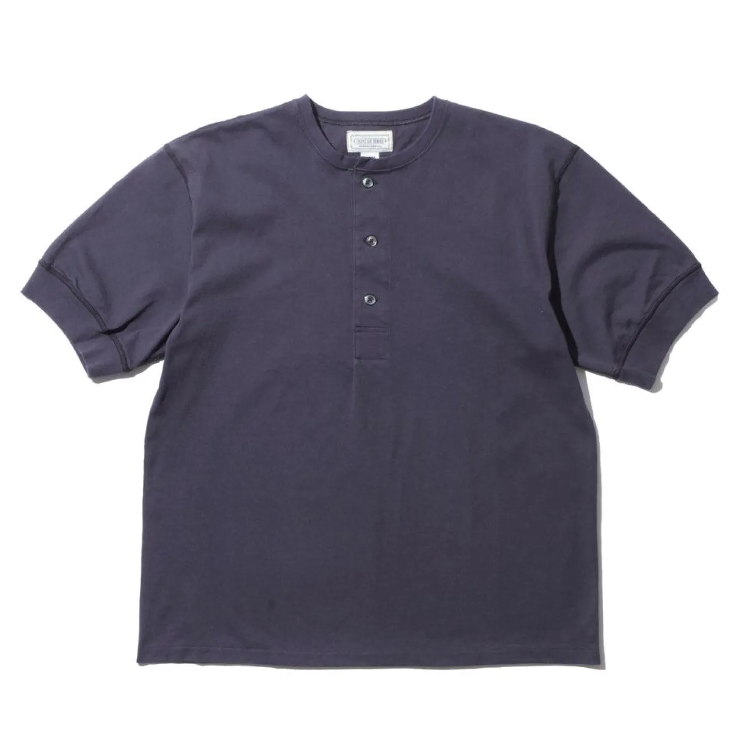 Cut from 100% organic cotton in Japan the Henley is a perfectly executed early workwear style. A three button front henley has been paired with a placket, while fine sewing techniques are seen throughout. A crew neck collar and slight slubby handle completes the look.