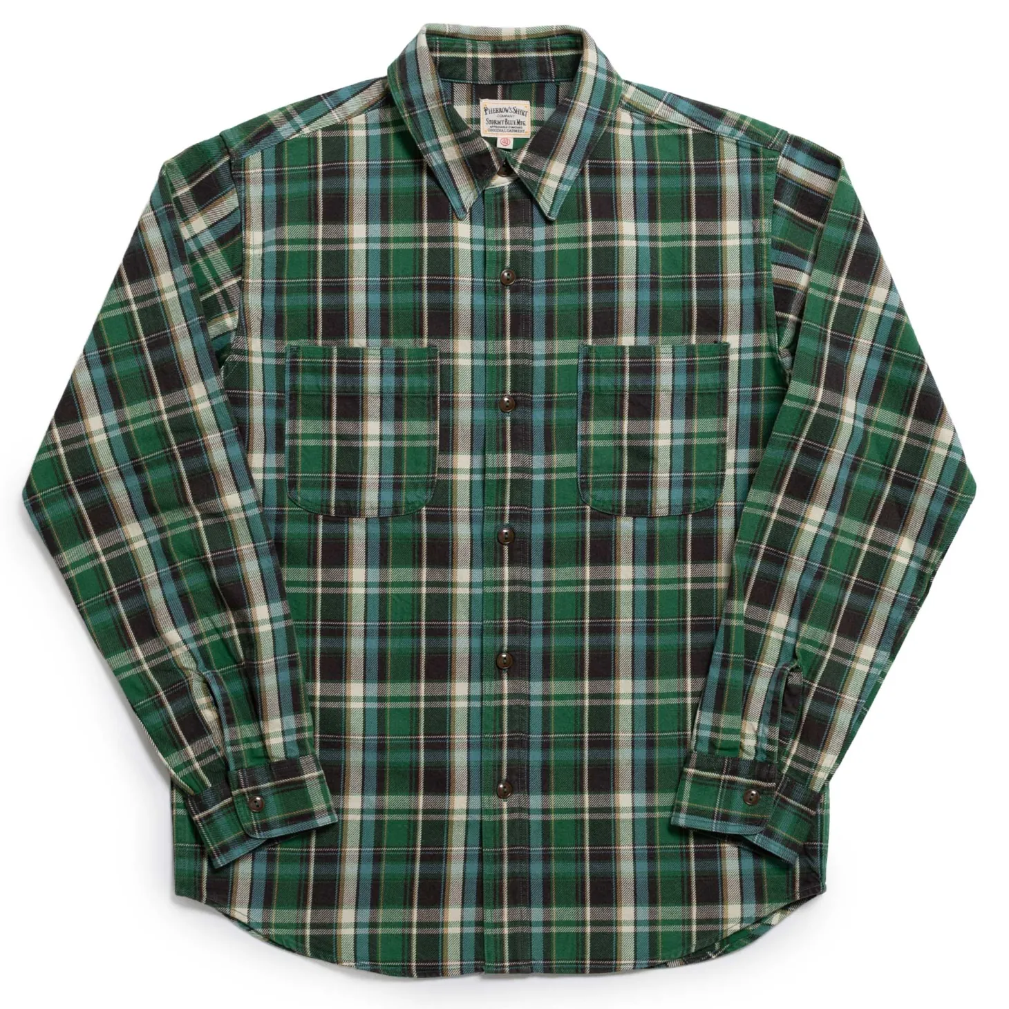 Two symmetrical chest pockets have been paired with a button front, while a slight curved hem & woven Pherrow’s garment label completes the look.