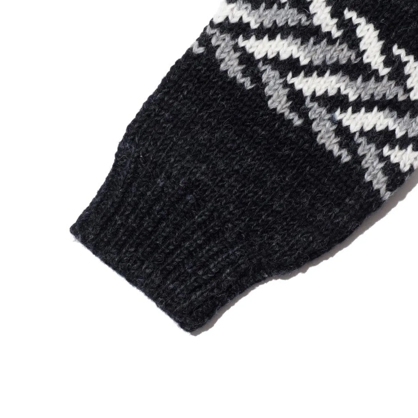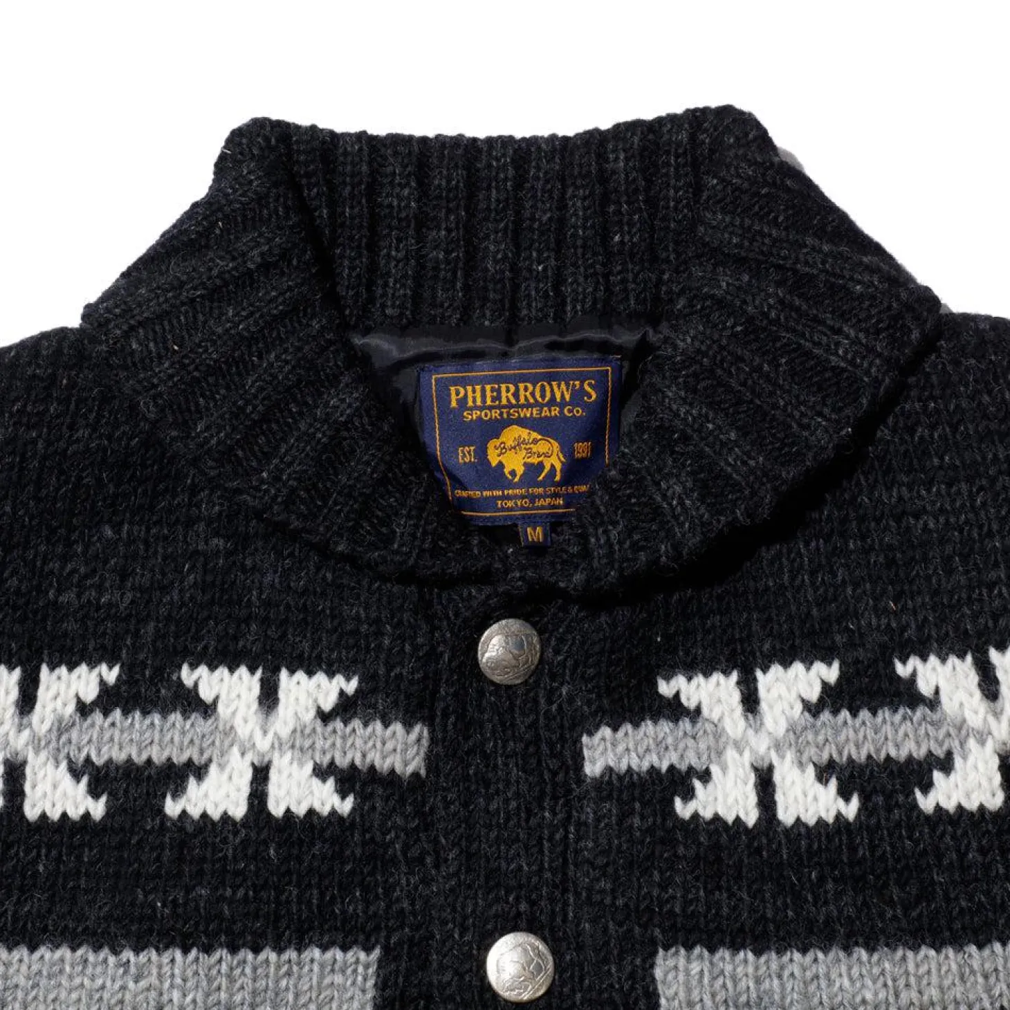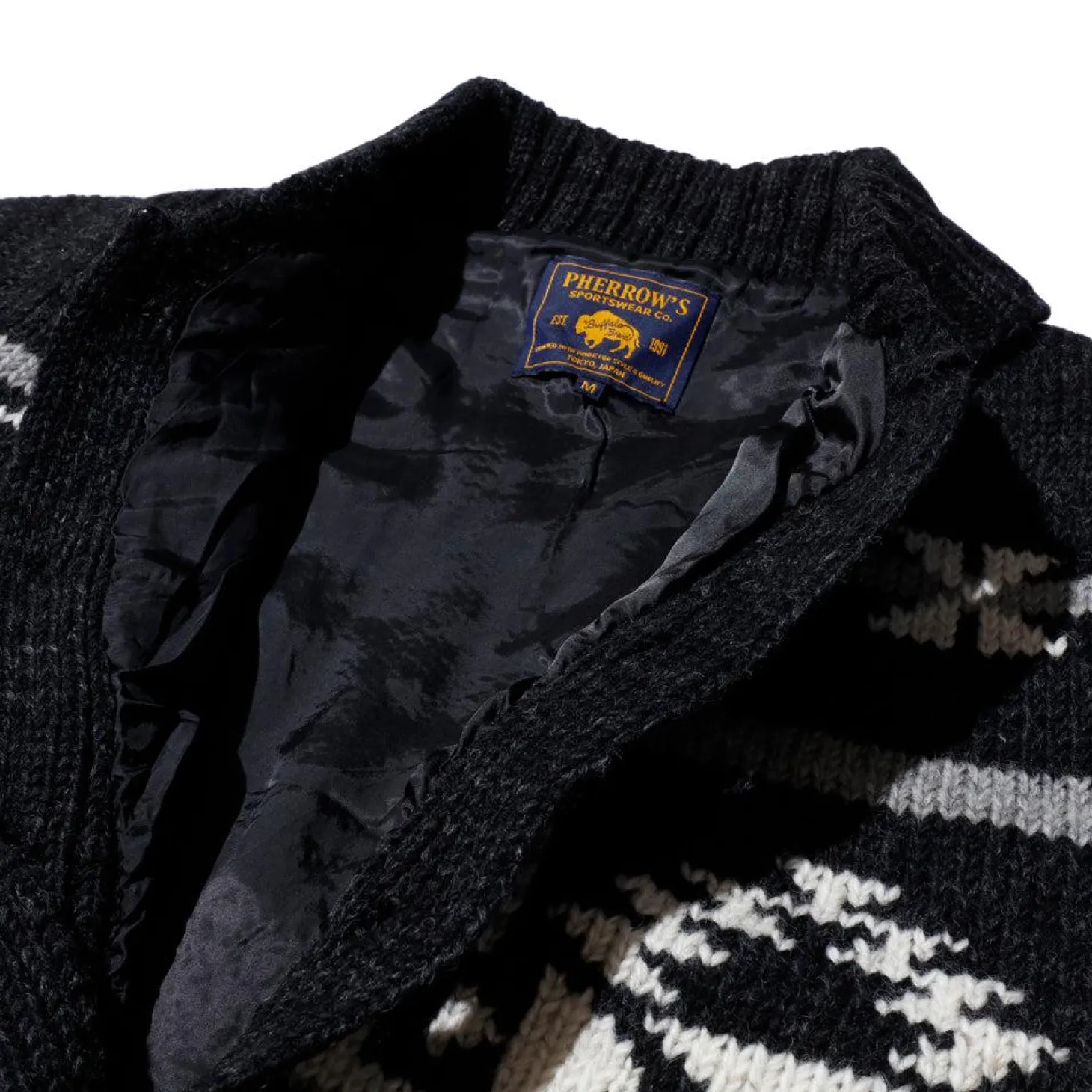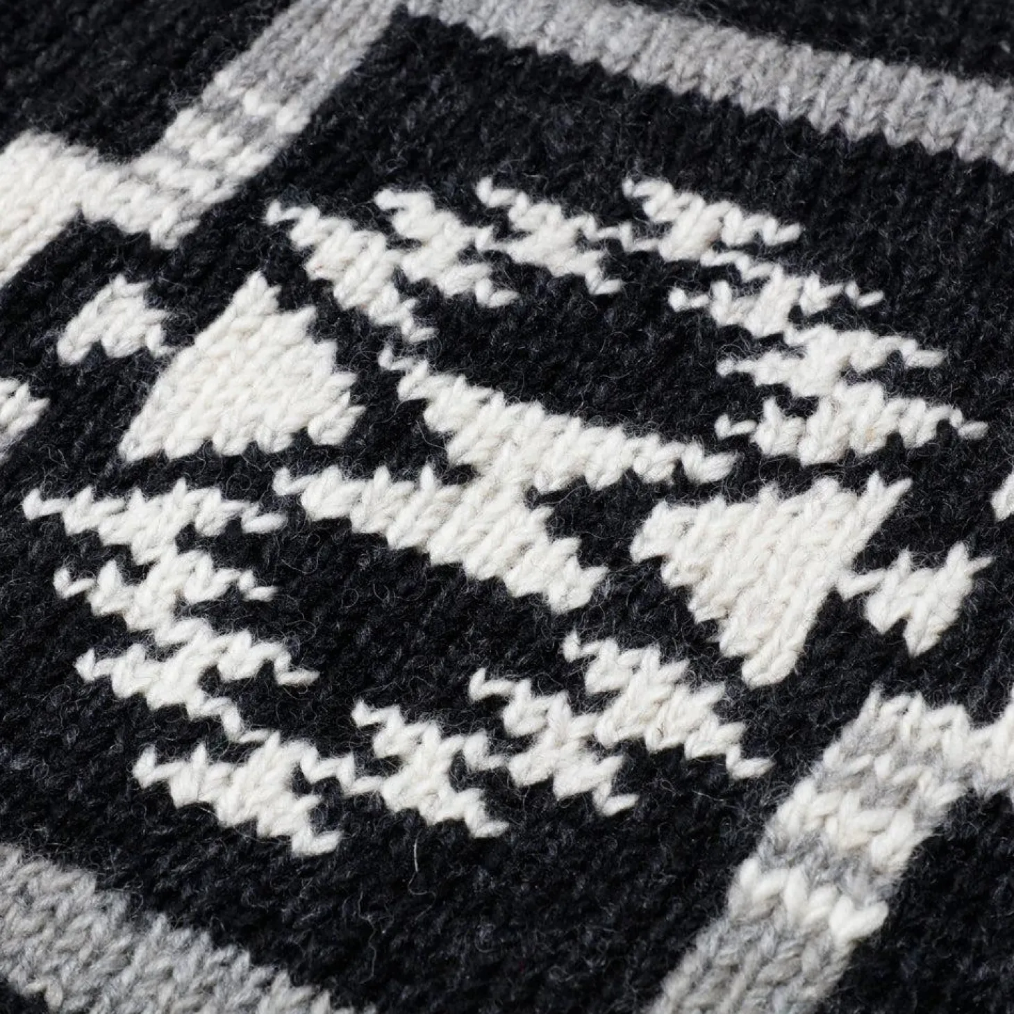 Drawing inspiration from the Cowichan style of knitting, originally made by the Cowichan people of Vancouver Island, British Columbia. The style became popular with tourists and people out side of the Cowichan community in the 1920’s. Usually made in Grey, Cream or Black, Cowichan Cardigans feature geometric and Native American motifs on the back and front and have inspired many brands to reproduce this classic design.