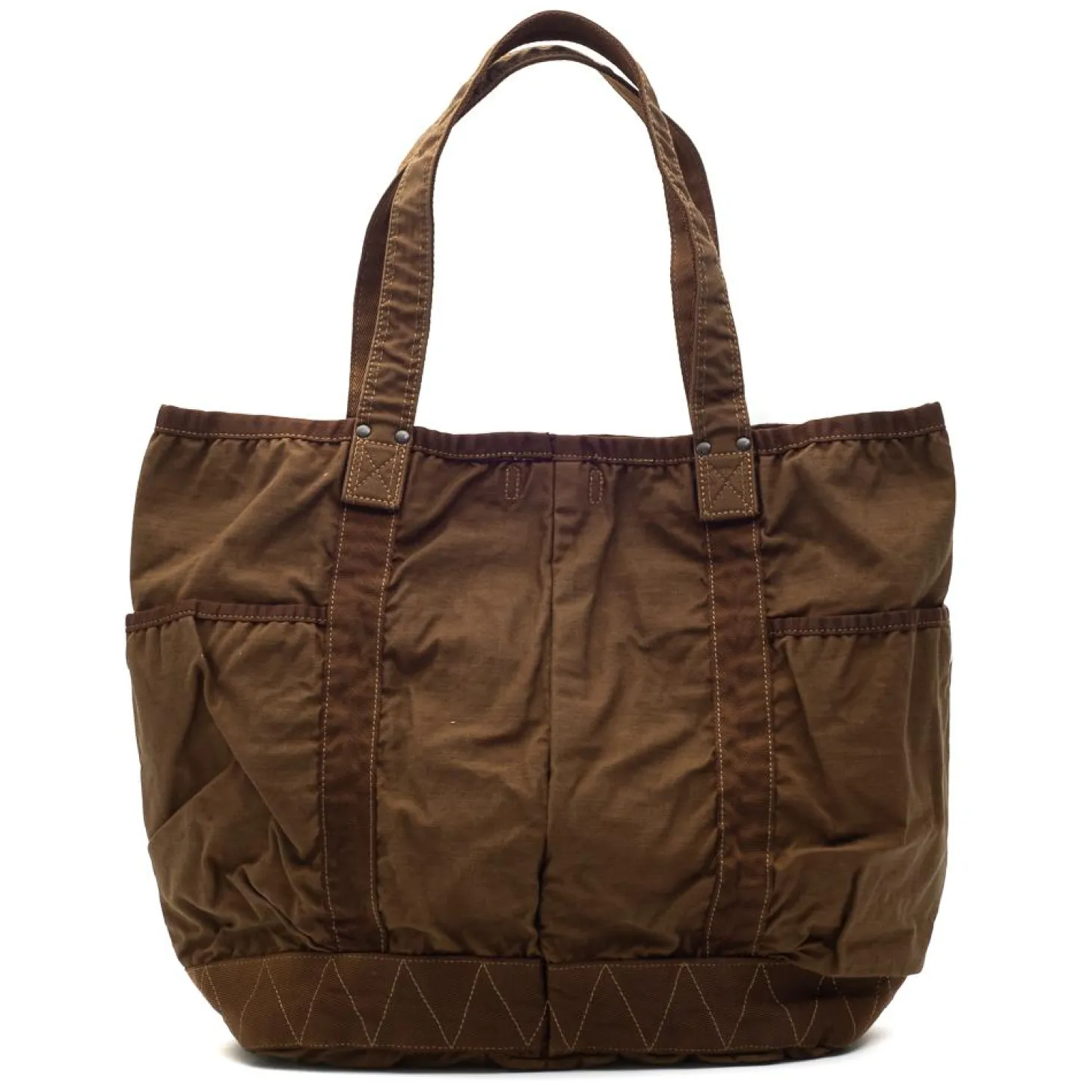 The Tote Bag has been cut from an original back satin, which is a high density weave of cotton and nylon. These have been sustainably garment dyed in Kurashiki, Okayama using a ‘two-bath dyeing’ process, resulting in a deep shade with various tones running throughout.