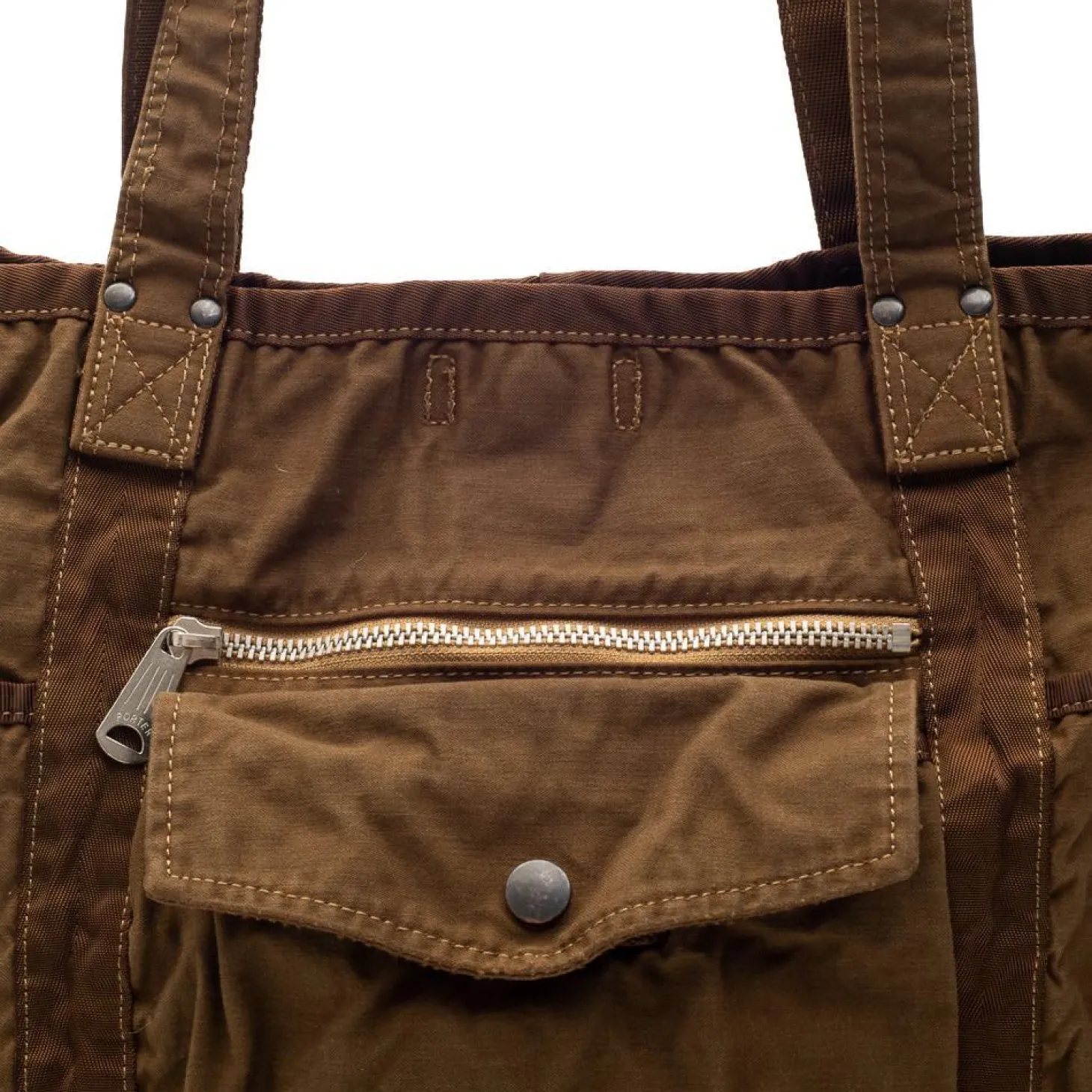 The Tote Bag features nylon webbing throughout and features two interior compartments. There are multiple pockets on the front and side for excess carry and storage with zip and snap closure, while it can be carried with the top handles.