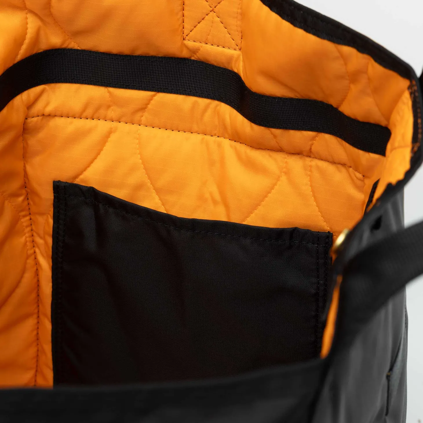 The 2Way Tote from Porter’s Force Series features two external side pockets, a roomy main compartment featuring a detachable laptop sleeve and two internal smaller organiser pockets. This bag can be carried in two ways – carry with the two top handles which have enough drop to be worn on the shoulder, or attach the longer nylon webbing strap and wear across the body. Finished with Porter’s signature orange lining and internal zip pouch.