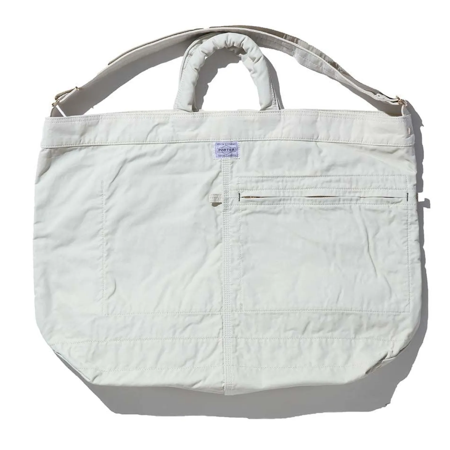 The 2Way Tote takes style/design cues from vintage style coal bags and has been updated for the modern day. Cut in Japan from a cotton/nylon twill, the bag can be used in two ways, either with the cushioned handle or with the adjustable shoulder strap. An exterior zip pouch has been paired with two interior pouches while the lining has been cut from a cotton ripstop. Subtle Porter branding on the exterior completes the look.