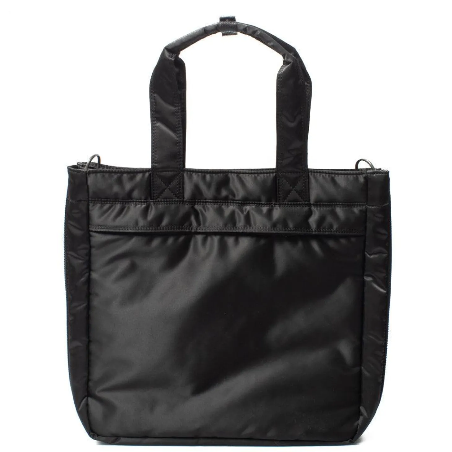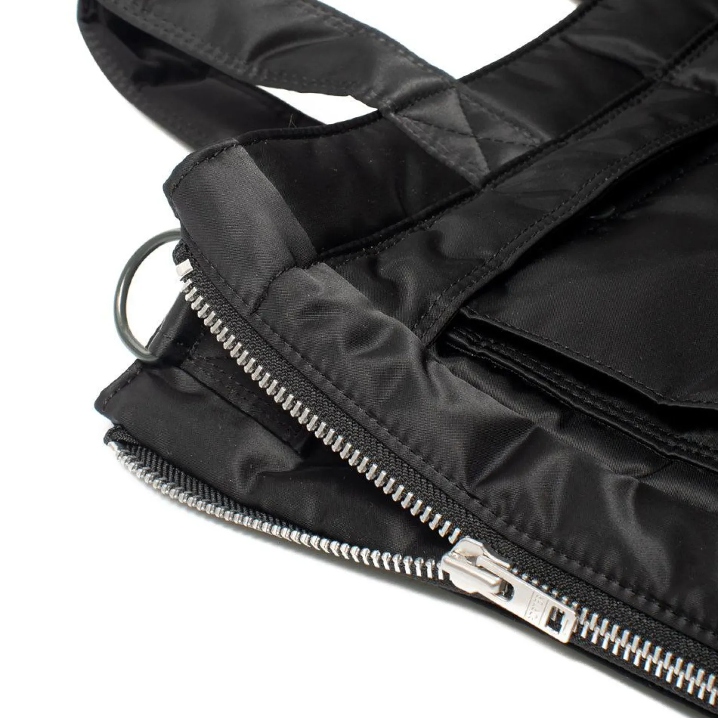 Designed with a utilitarian aspect in mind, the 2Way Tote Bag is fully equipped to meet the standards of everyday life. Cut from Porter Yoshida & Co’s standard durable black shell nylon, the bag is designed with easy access in mind, with two large zipped pockets on the front. Concealed within the interior is a plastic stow away compartment with zip closure as well as an additional storage space. The zip runs along the outside to give additional space once opened, while the Tote Bag is complete with detachable shoulder strap and pressed stud closure.