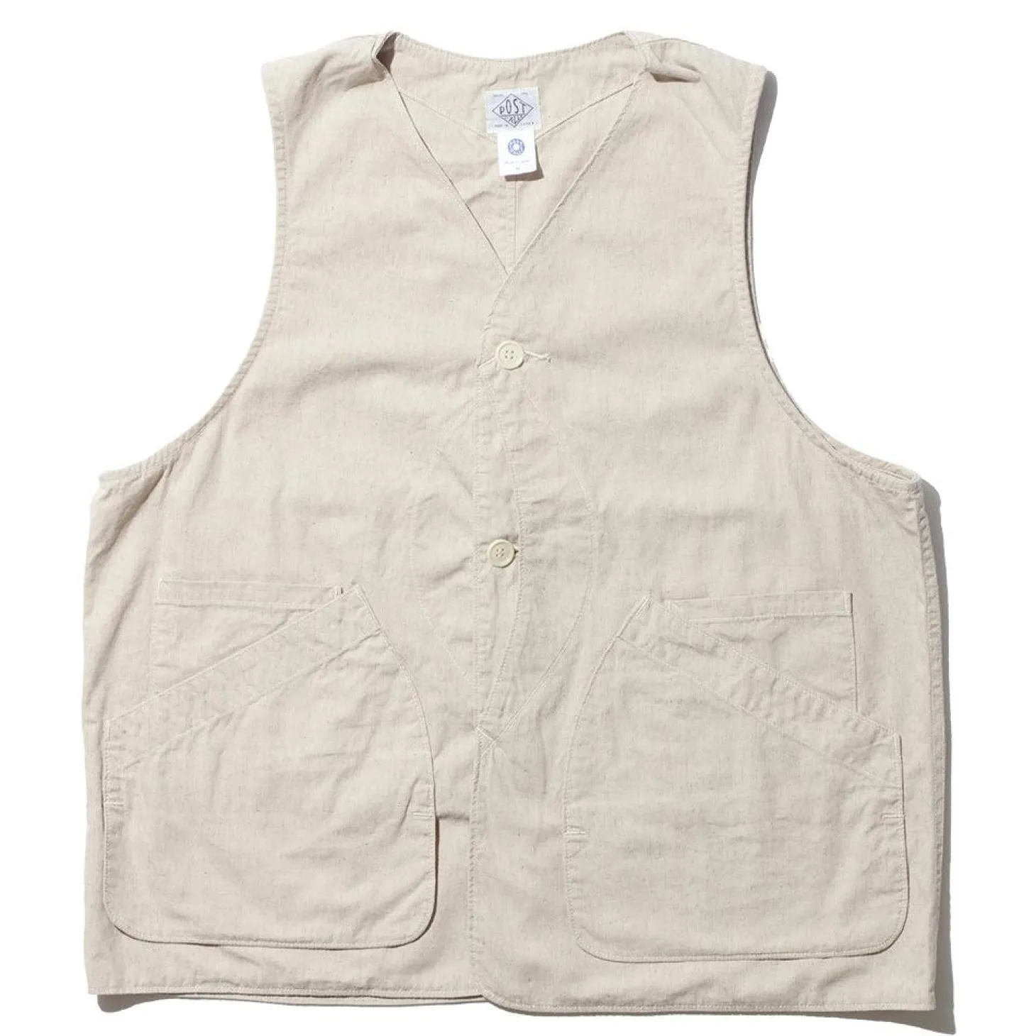 Introduced for SS24, the Dee Vest is cut from a blend of hemp & cotton in Japan and takes inspiration from vintage explorer style vests. Cut a little longer and with a square hem, the Dee Vest features a two button front, a front and centre stow map pocket & four frontal side pockets.