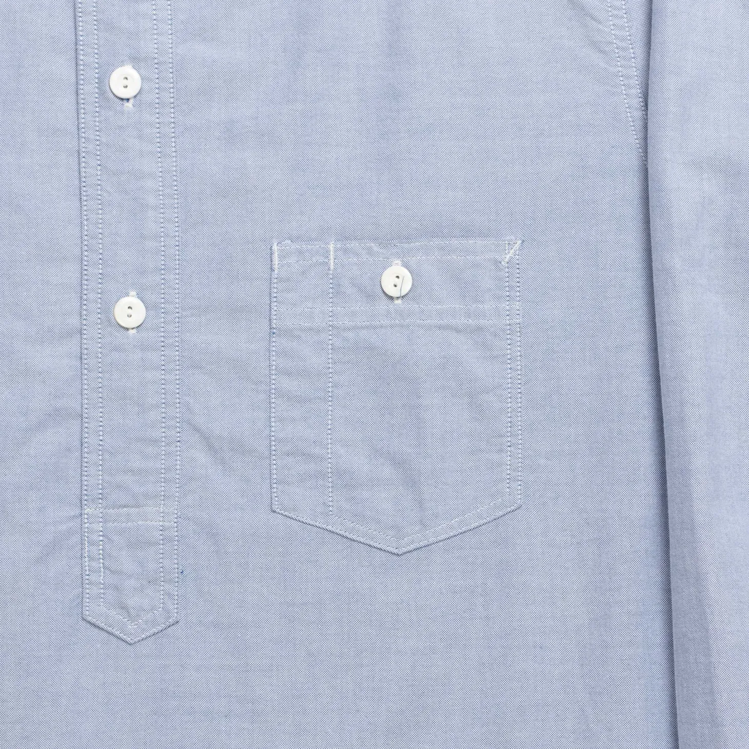 Cut in Japan from a crisp cotton oxford cloth, the shirt features all the detailing found on these pre-1920’s style shirts. A 1/4 button placket has been paired with a regular collar and double throat tab, two symmetrical chest pockets as well as vintage detailing like chain stitch run offs and reinforced gussets. A curved hem & contrasting stitching throughout finishes of this classic style.