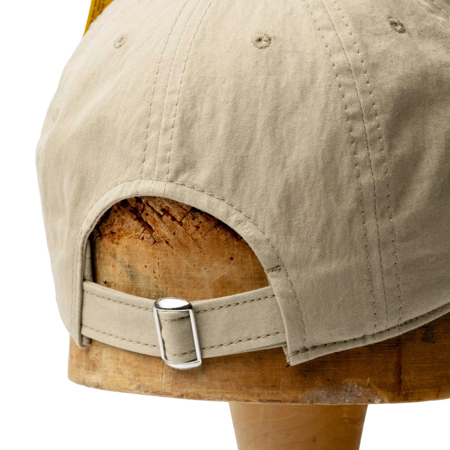 The Sunny Dry Baseball Cap is cut from a garment dyed washed crinkle cotton, has a medium height crown and comes with a medium length brim and 19 concentric stitches to the peak as well as 8 panel construction with eyelets and a cotton sweatband to the inner. The cap is complete with an adjustable strap back to alter fit as necessary.