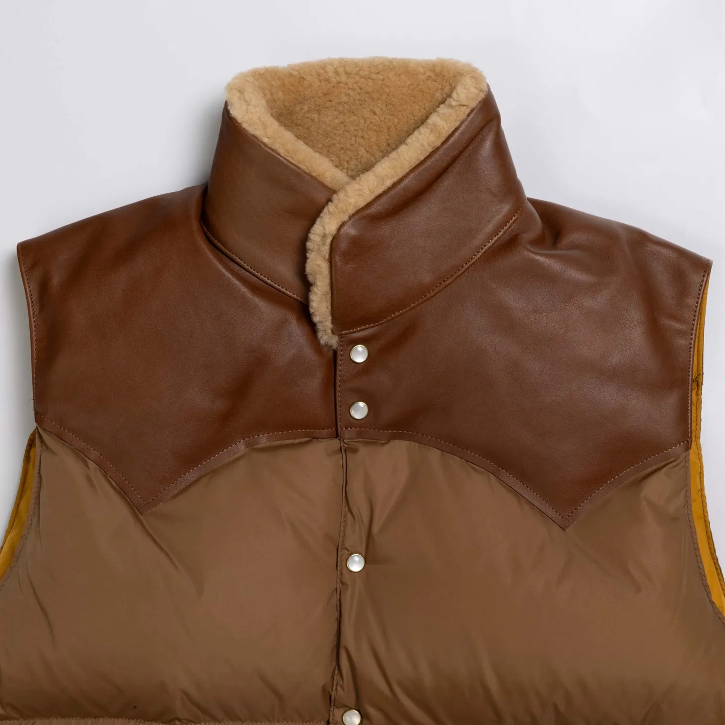 Rocky Mountain Featherbed was founded in Wyoming (the Cowboy State) in the late 1960’s. RMFB created its iconic down vest with a seamless single-piece leather yoke for cowboys and their down vests became infamous for their cold-proof and heat-retaining features like those of feather beds.