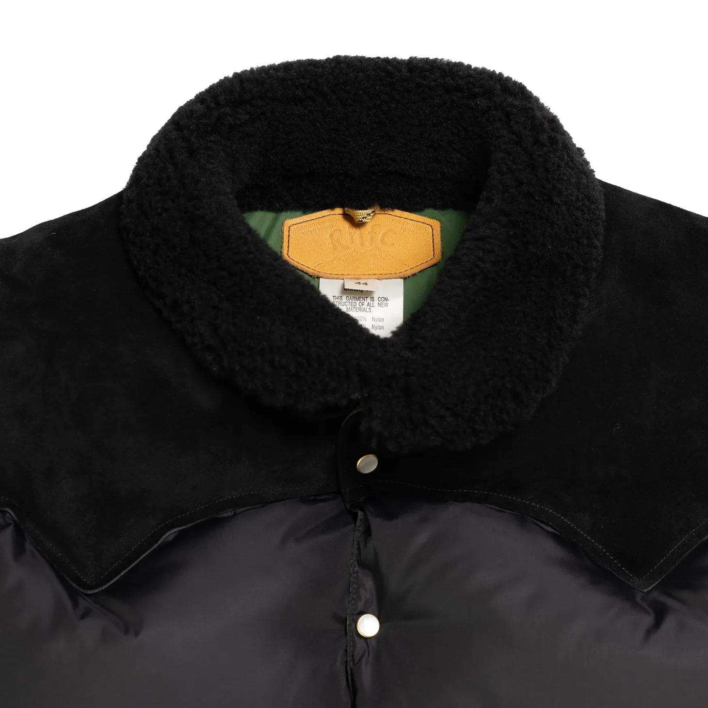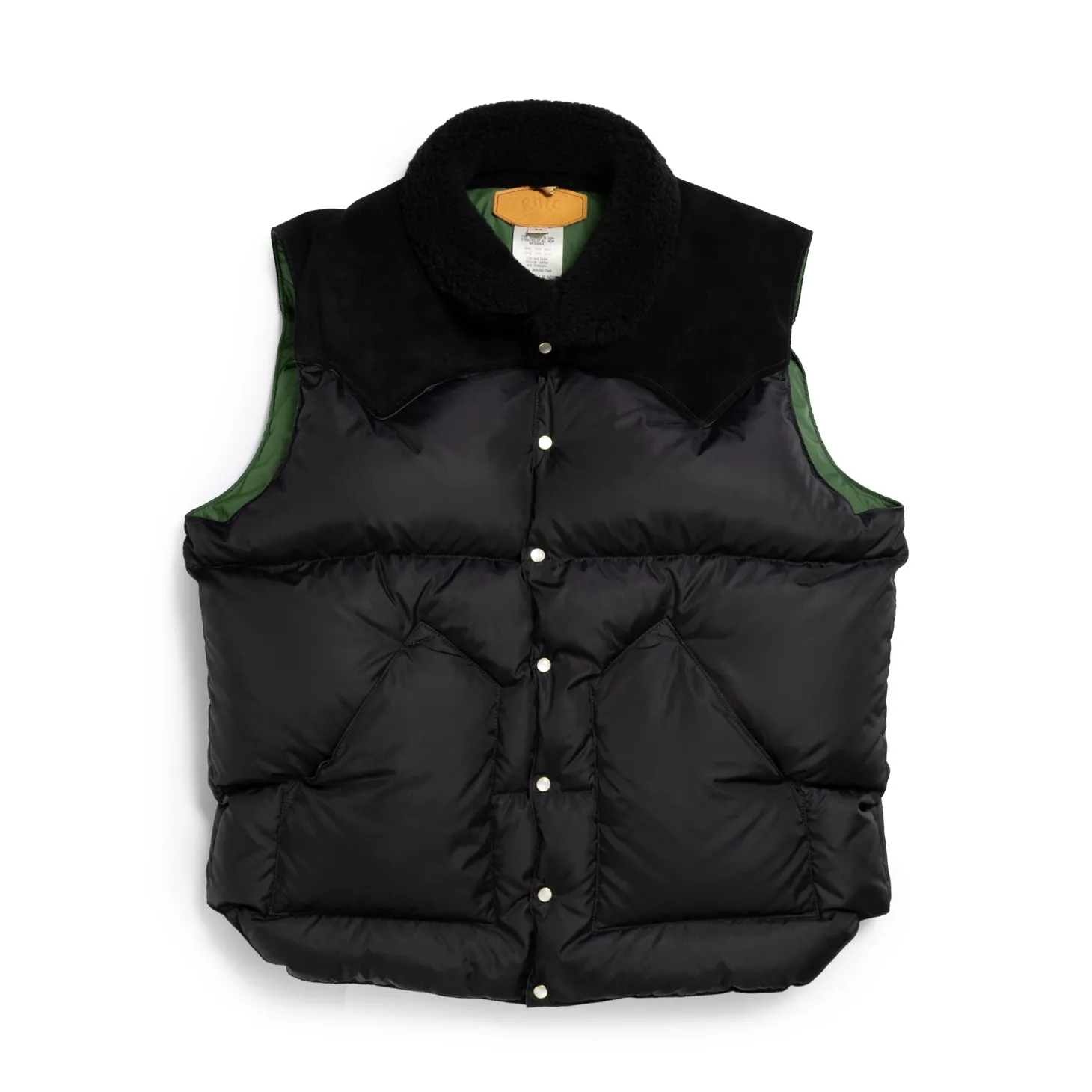 Rocky Mountain Featherbed was founded in Wyoming (the Cowboy State) in the late 1960’s. RMFB created its iconic down vest with a seamless single-piece leather yoke for cowboys and their down vests became infamous for their cold-proof and heat-retaining features like those of feather beds.