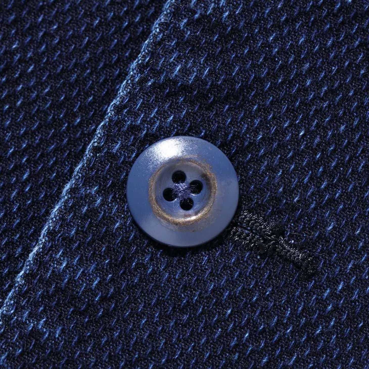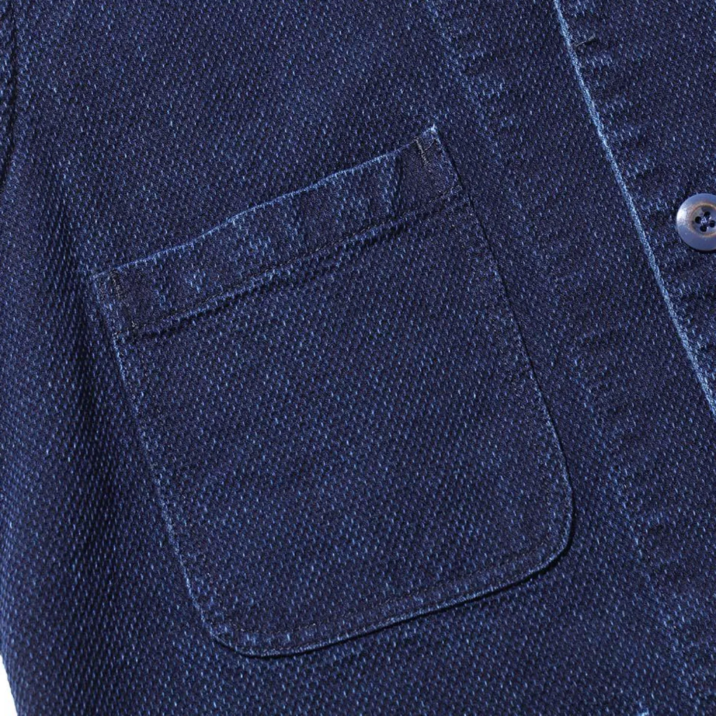 The Marcy features double slanted pockets with ample space to house pens, pencils or brushes as well as a single chest and lower pocket. Constructed from a washed indigo sashiko in Japan, the Marcy also features a button front and cinch on the back to adjust fit as necessary.