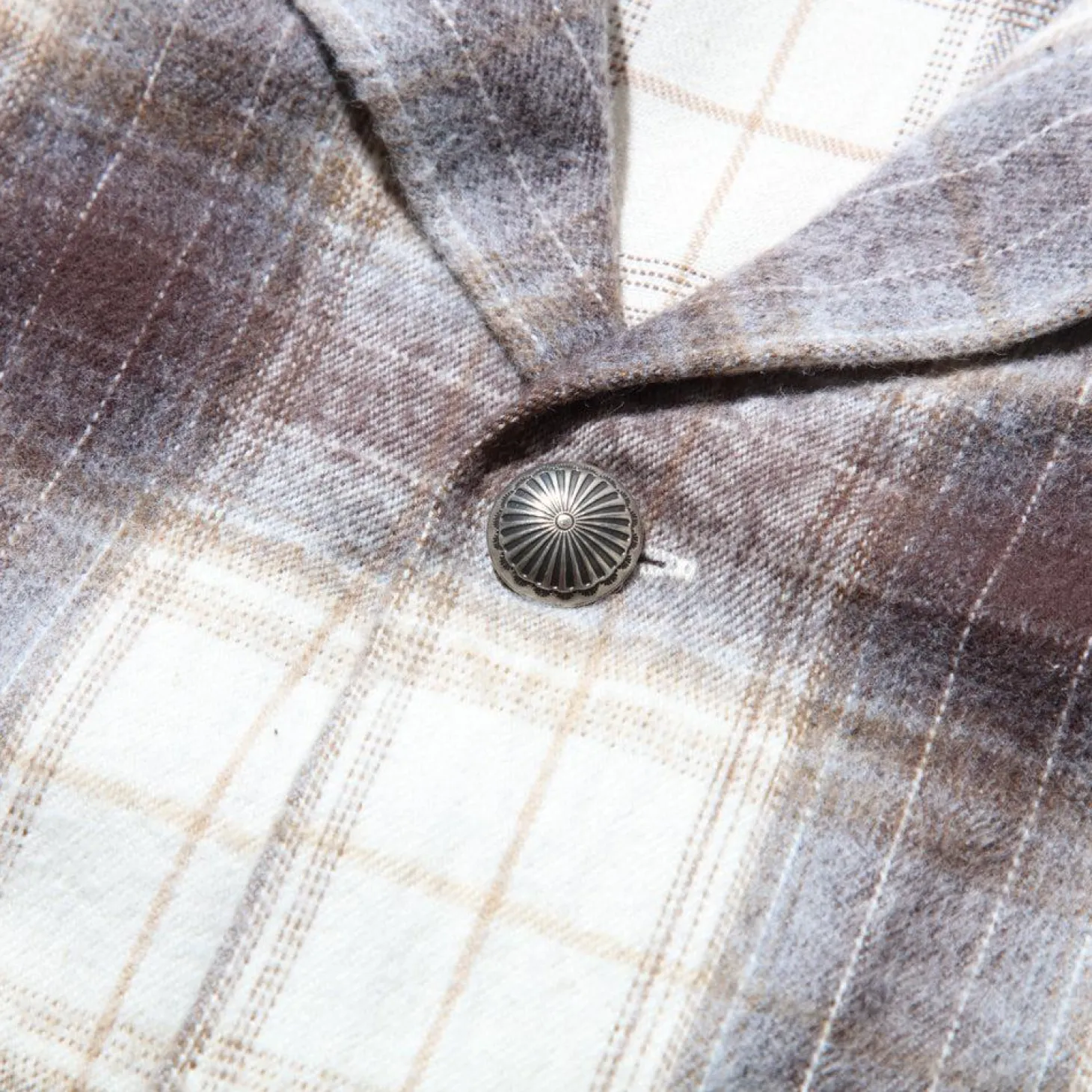 Expertly manufactured as always, these feature hand-made concho buttons for the button front, an open collar are two symmetrical chest pockets with flap closure, while a relaxed, boxy fit completes the look.