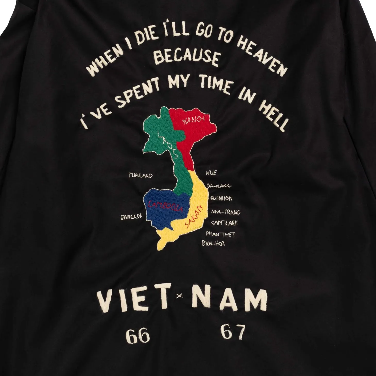 The Vietnam war and US involvement bough more servicemen thousands of miles from home the local style of souvenir jackets made up by local tailors differed from the Japanese rayon and satin jackets of post-WWII.
