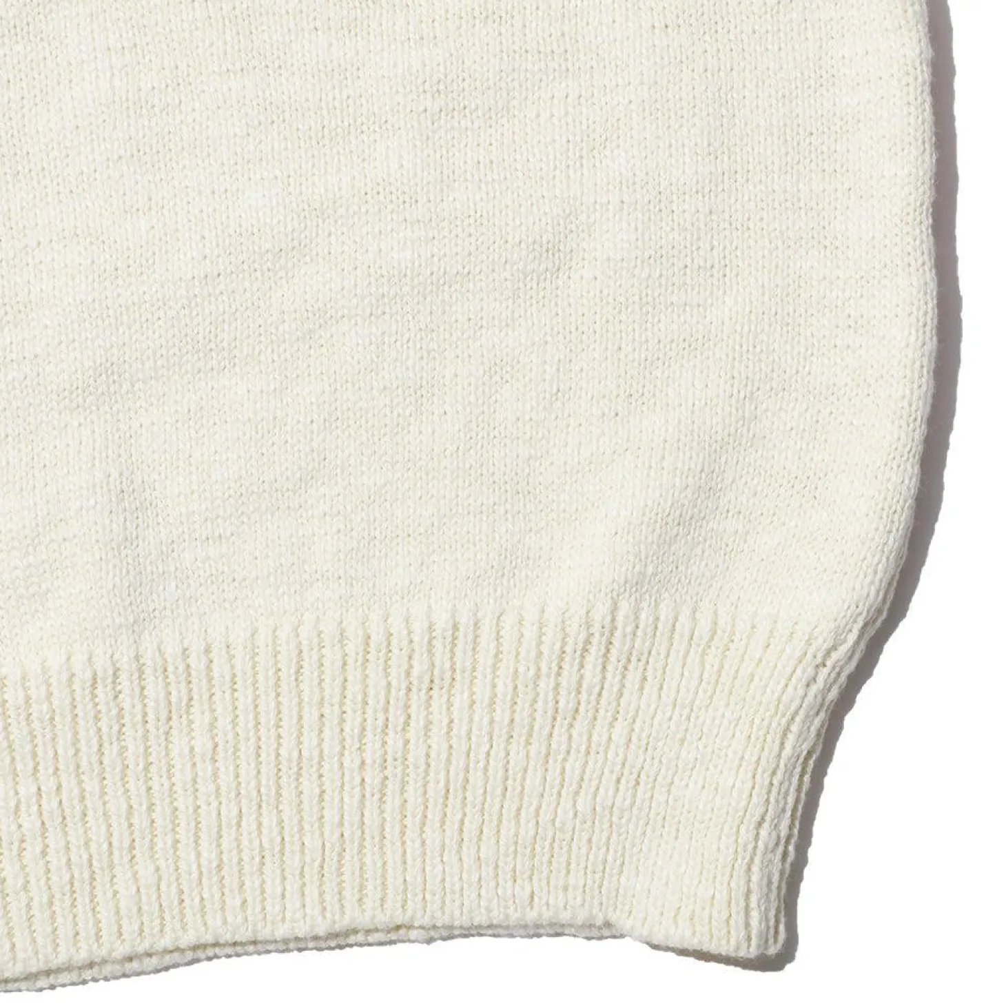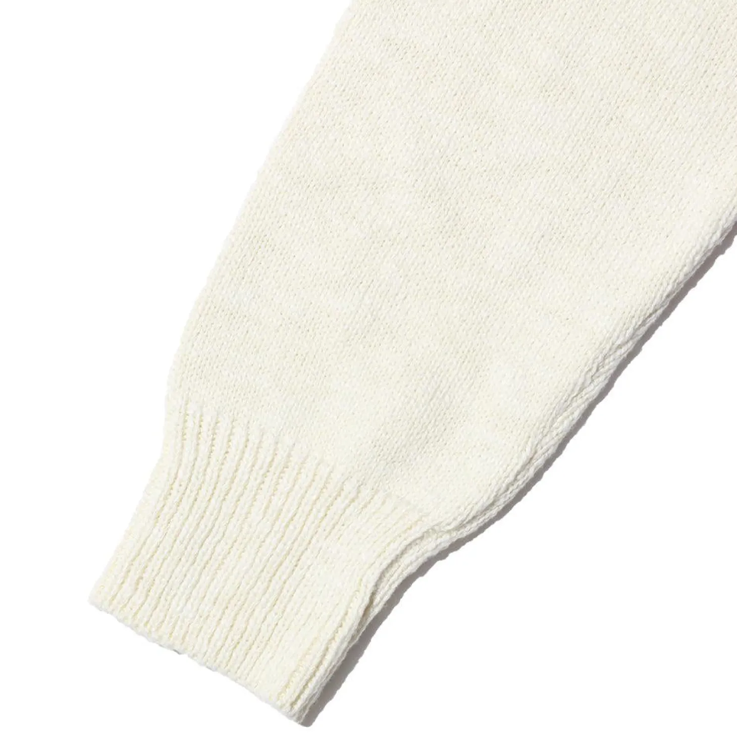 Cut in Japan from 100% cotton, this crewneck sweater from McCoy’s is knitted in such a way to prevent slants and twists in the body shape. Finished with a simple, relaxed fit and ribbed crew neck collar & hems.
