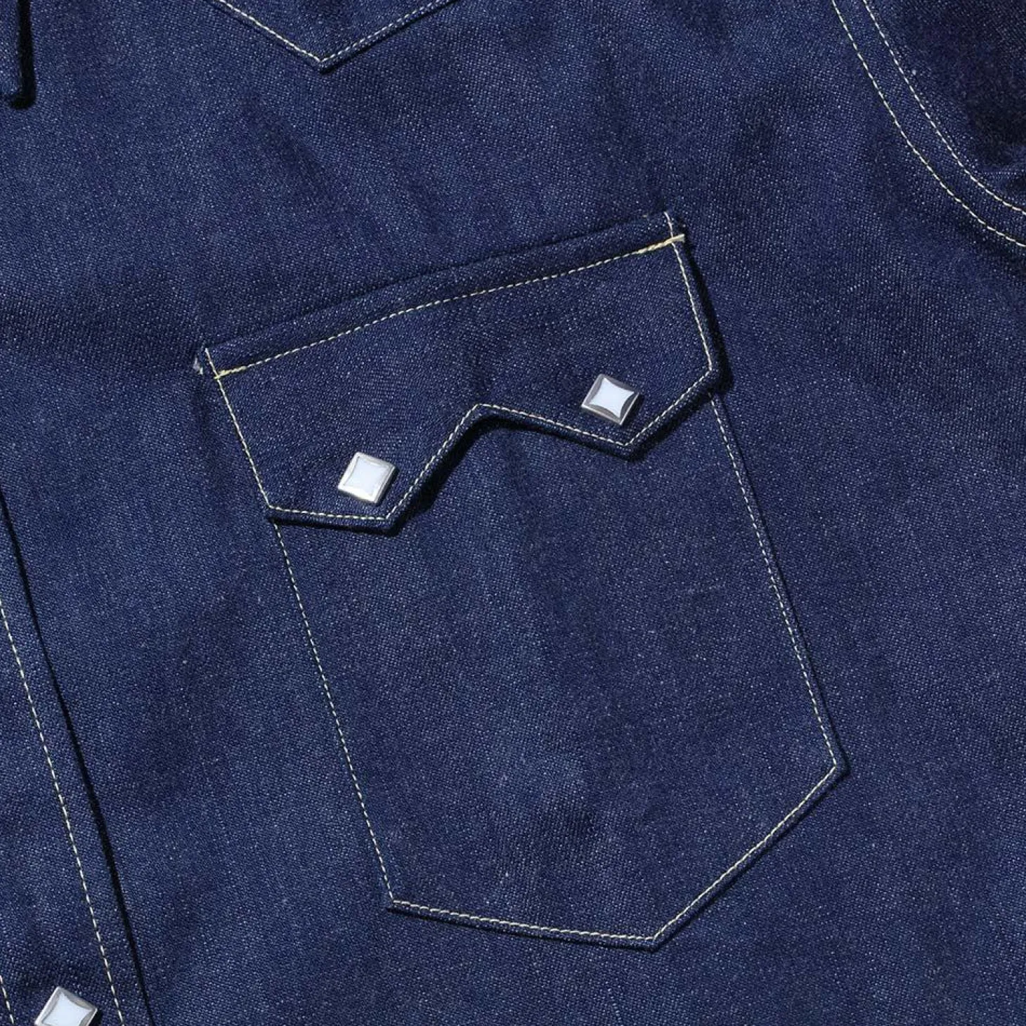 The Real McCoy’s Denim Western Shirt is cut to the classic form of a Sawtooth Western Shirt, whereby the pocket flaps are cut into a double pointed ‘sawtooth’ shape – forming a classic Western feature – named after the edge of a saw blade.