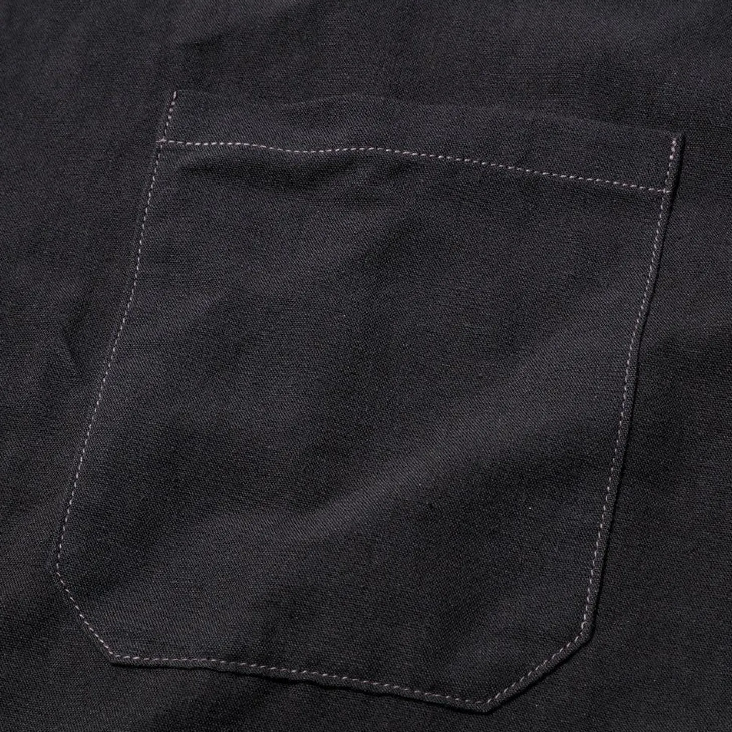 Cut from a 50/50 blend of cotton & linen, the Junk Force Pajama Shirt is simple in design and comes in a vat dyed black colour-way. It features a simple button front with round crew neck collar, while there are two lower patch pockets & a single chest pocket. The sleeves are a cut a little shorter to allow for a relaxed fit and feel for the breezier months ahead!