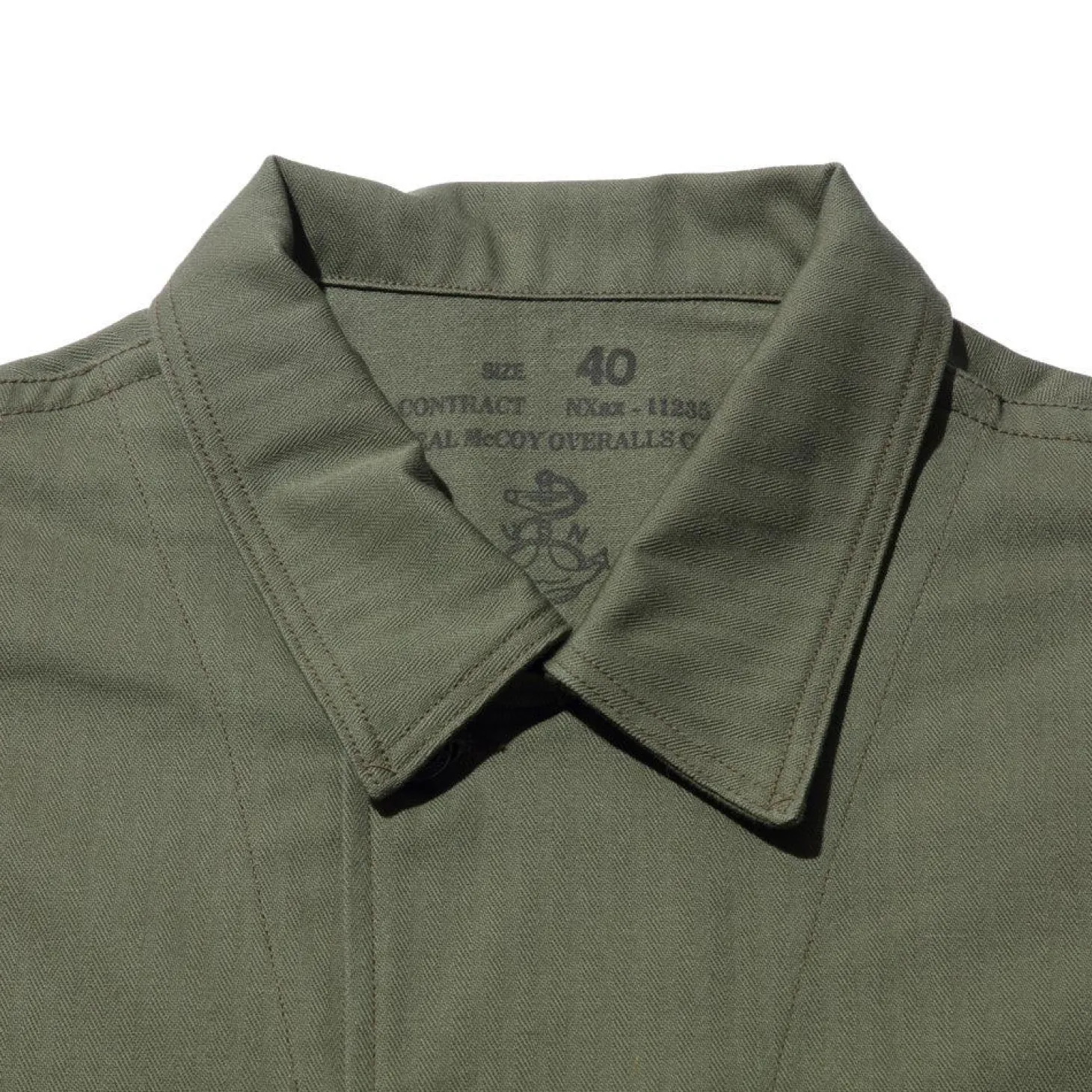 Cut in Japan from 100% cotton, the N-3 Utility Jacket comes in the classic colour-way and a herringbone twill. As a war-time model the button front was changed from five to four and features laurel wreath donut buttons. Two hip pockets have been paired with a single chest pocket while laurel wreath button cuff adjusters aid fit. A stamped USN Real McCoy’s Overall Co and contract no completes the look.