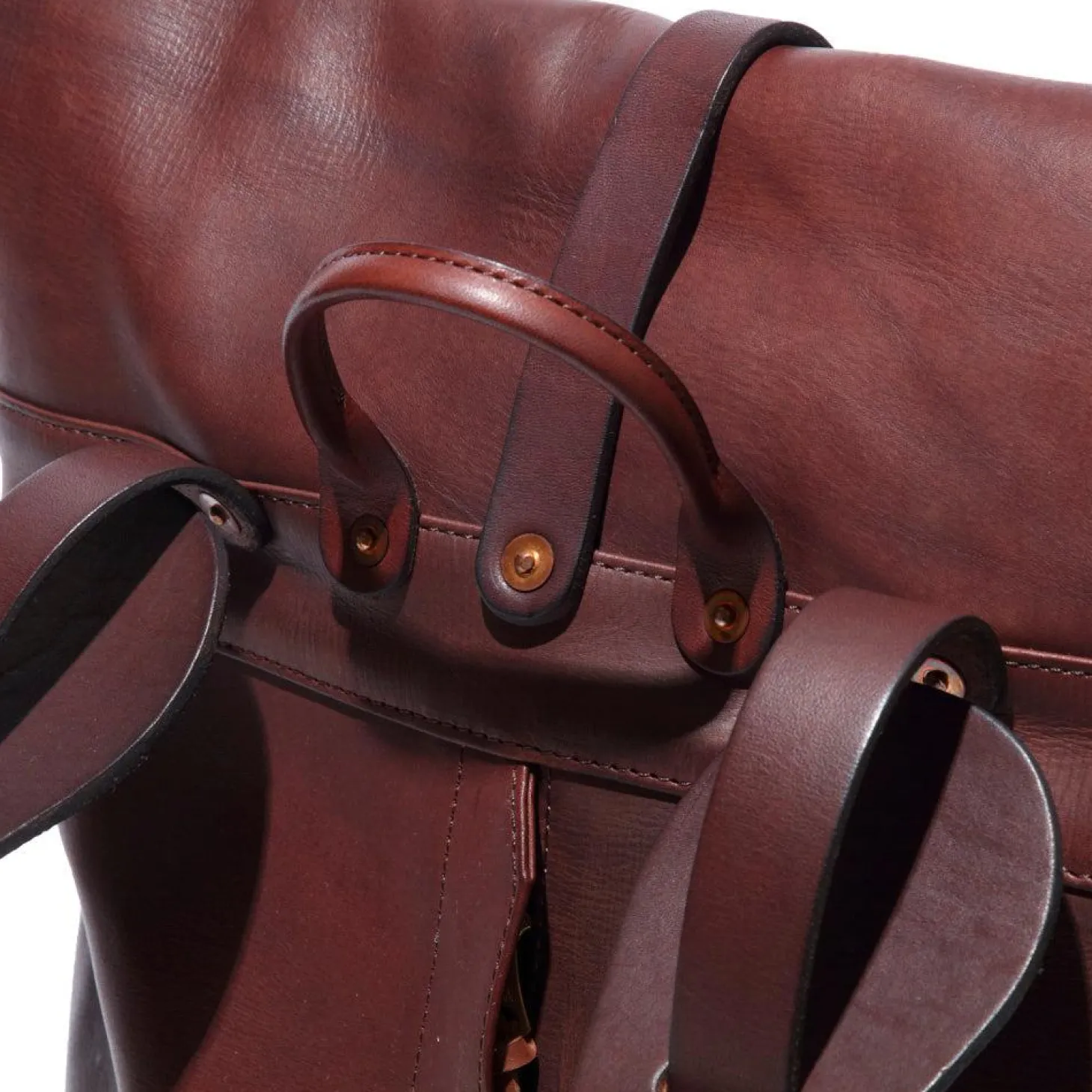 The Roll Top Rucksack is inspired by vintage style outdoor backpacks. This bag has been cut from a heavy duty cowhide leather in Japan sourced from the respected Himeji Tannery. This tannery is unique in using traditional hand dying techniques to vegetable tan the strong cow hide, which is infused with oils giving it a rich depth of colour and ‘vintage’ appearance.