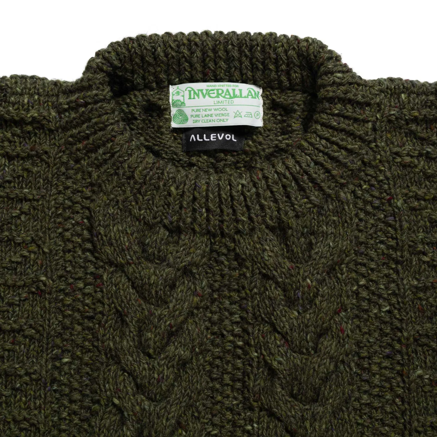 A collaboration with Inverallen of Scotland & Allevol, each piece is and hand-knitted to a traditional cable knit pattern. This 1G Pegasus Crew Neck style is knitted with a blend of wool & mohair in Scotland. A Simple ribbed crew neck has been paired with plain knitted ribbed cuffs and hem.