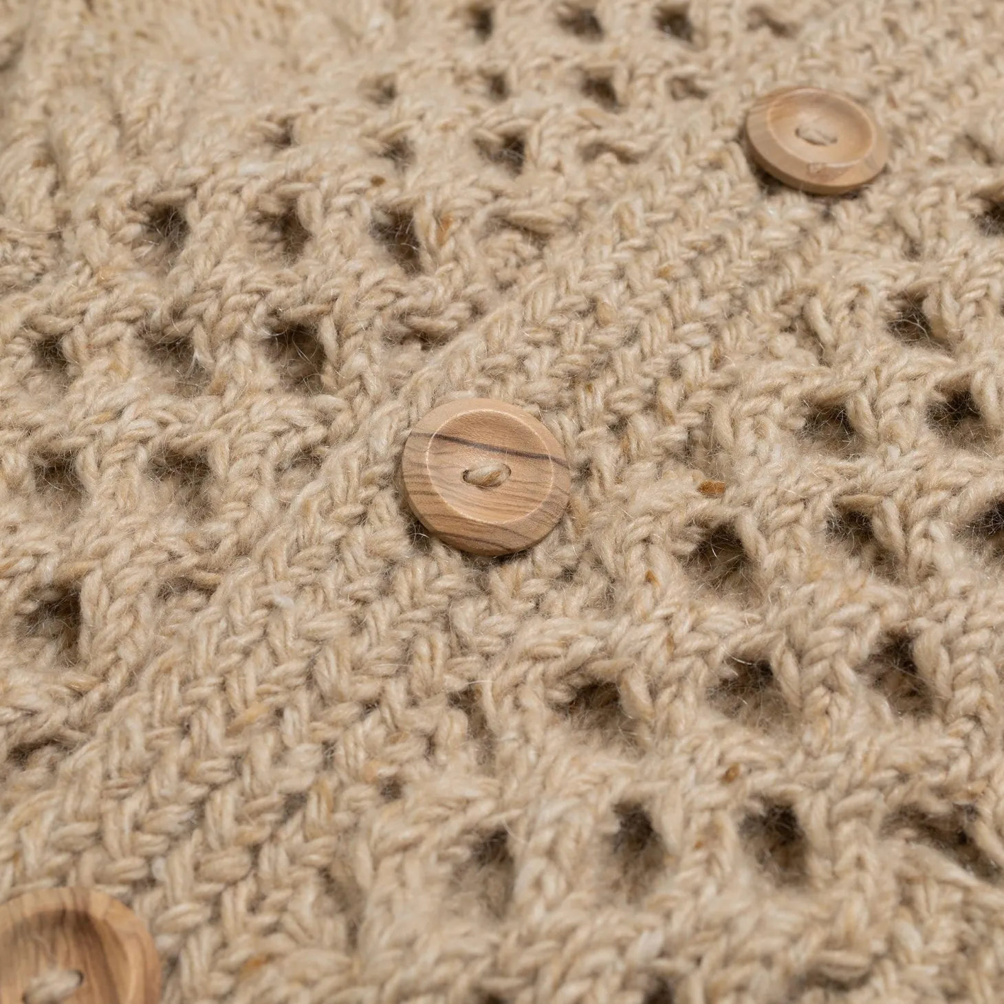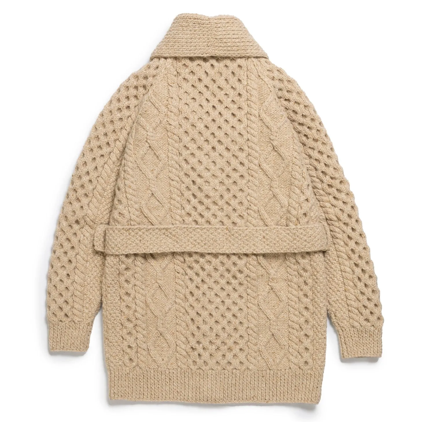 A collaboration with Inverallen of Scotland, each piece is limited in no. and hand-knitted to a traditional cable knit pattern. Woven in thick indigo-dyed cotton, with crafted wooden buttons.