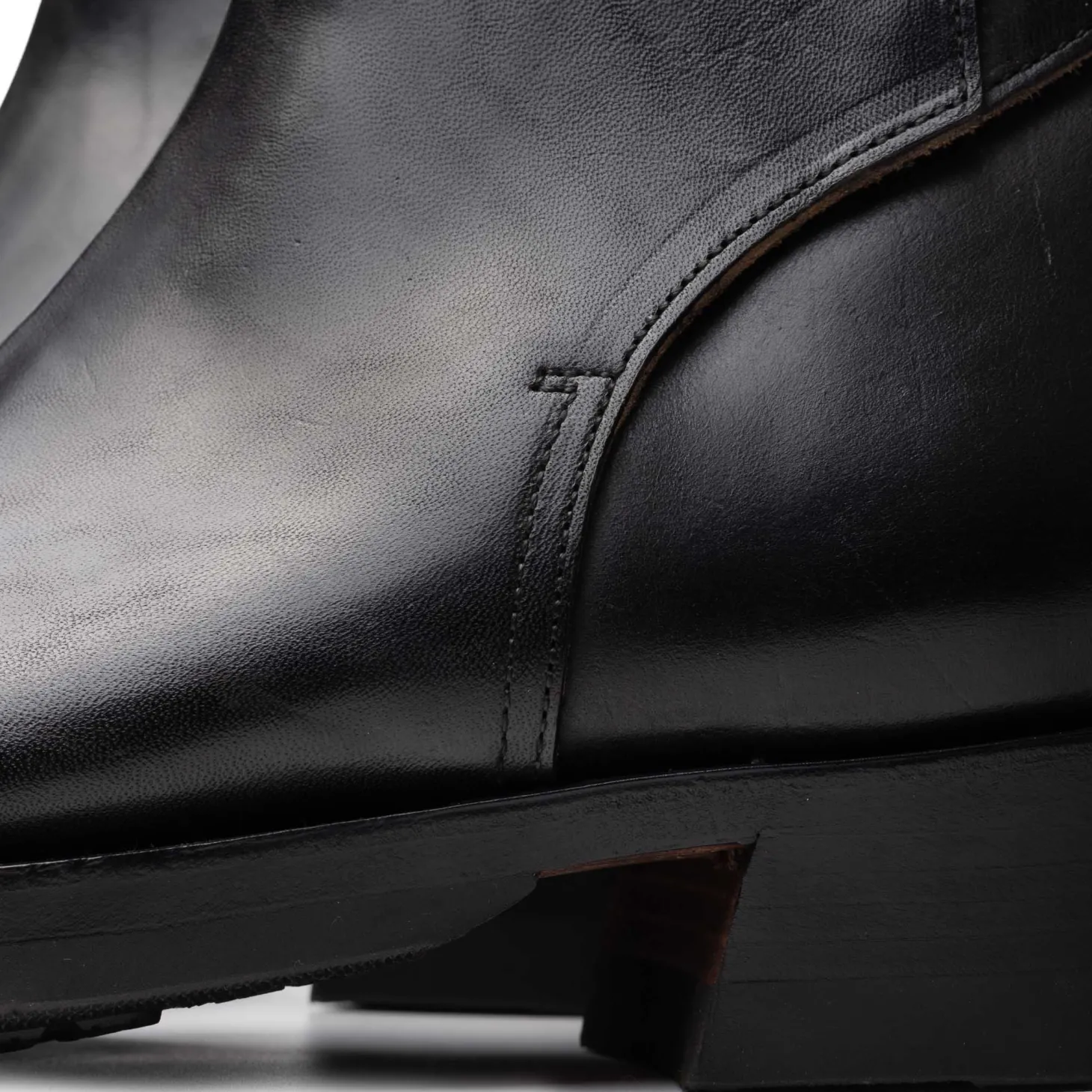 The CN Wide last which these Jodhpur Boots are built on have a beautifully sculpted shape, arguably the most distinctive and desired detail of this hand-carved wooden last created by Clinch. The fit is snug, contouring to the foot, with the intent of the leather moulding to the shape of your foot over time. The all-important toe box style is un-structured, and reasonably flat keeping its shape without flattening out too much, and the vamp fits closely to the instep. We find that the CN last can easily accommodate a US D-width fitting and most foot-shapes.