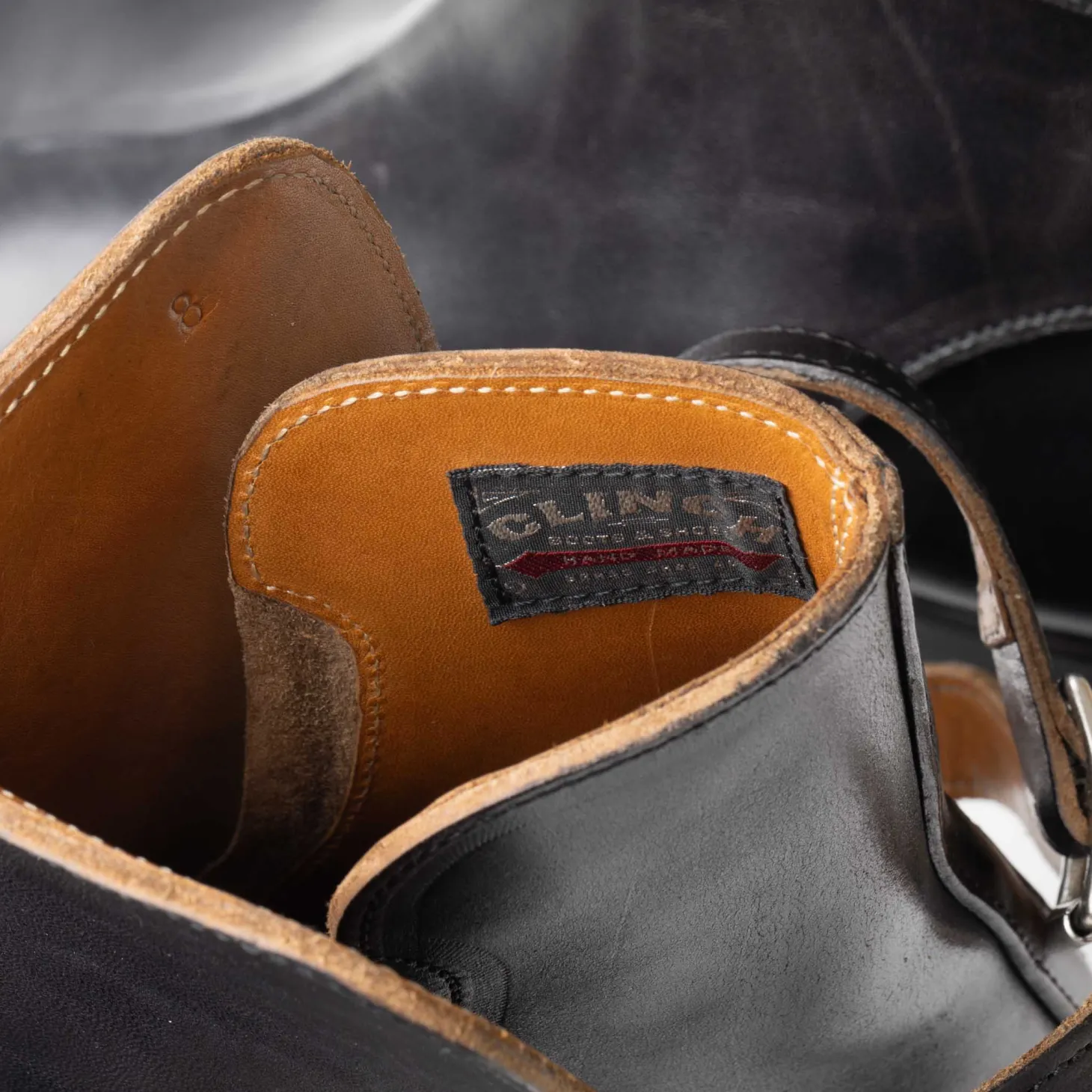 The Jodhpur Boot from Clinch is their take on a traditional Jodhpur style, although a little more refined, with some inspiration taken from their Engineers styles as well as their archive. These feature a logger heel, using a reproduction ‘O’Sullivan’s’ Heel Block (O’Sullivan’s was an American manufacturer of heels and patented this style in 1899). The vamp front features a unique crease line through the centre, similar to vintage Engineer boot styles as well as their own styles.