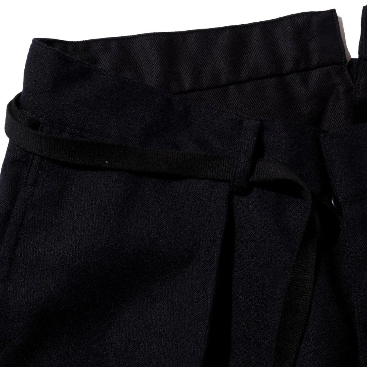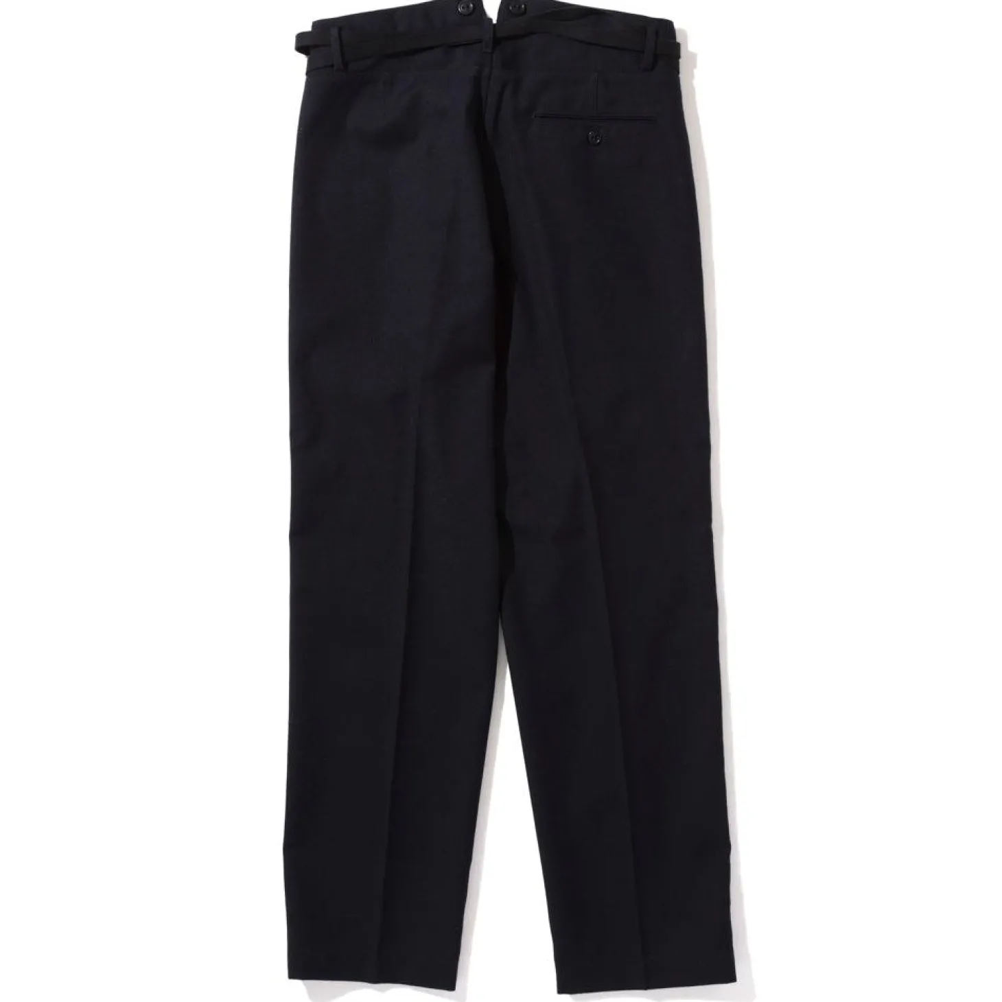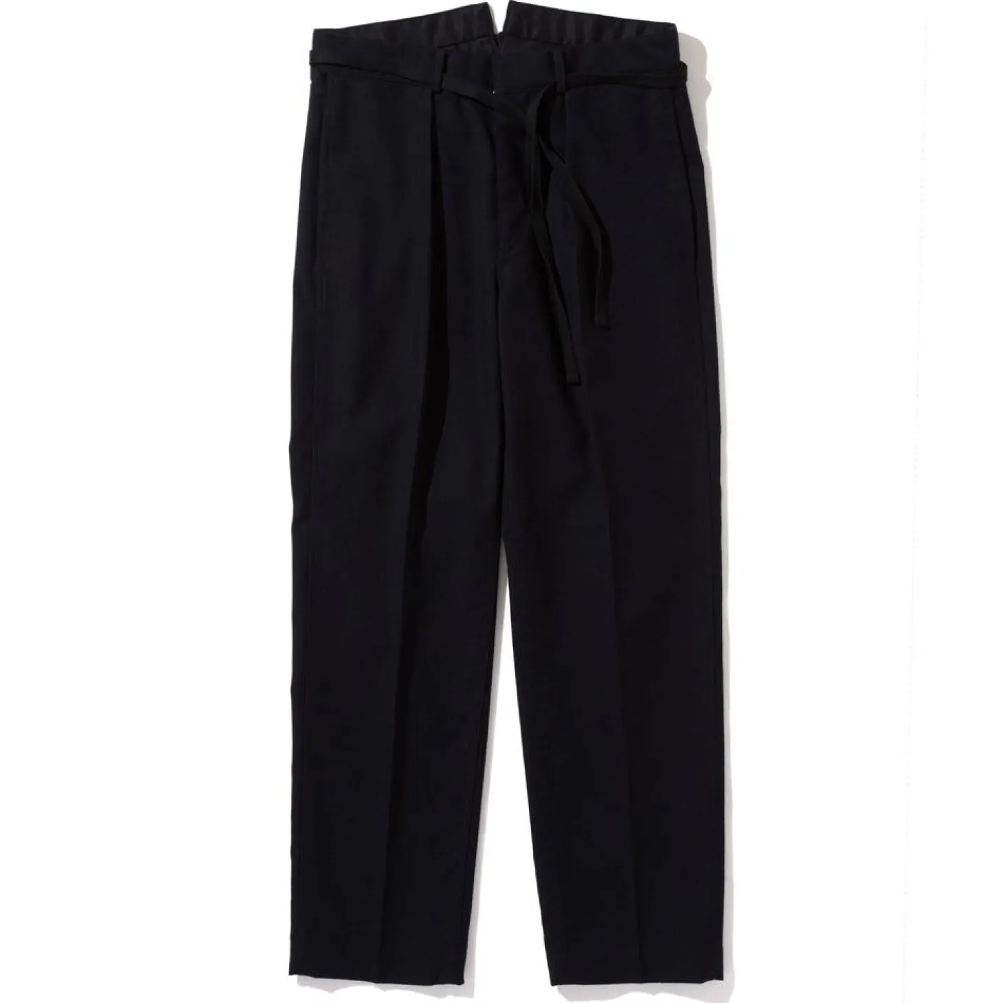Cut in Japan from the brand’s exclusive rover wool twill, the Alain is a straight fitting trouser, with a pleated front and belted waist with tie system as well as a button front. Complete with two front pockets sewn on the outside seam with intricate stitch detail and a single rear pocket with button closure. A fishtail back and buttons on the inside waist band and back complete the look.